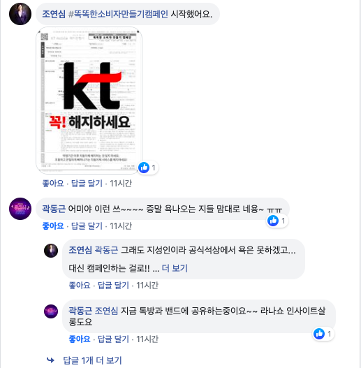 사연을 다 들었고, 원래 규정에는 없는데 자기 직권으로 6개월 분량을 환불해줄 수 있다는 거였습니다. 거기가 환불규정 자체가 없어서 그것도 자기 재량으로 그냥 해주는 거라고.. 무슨 선심쓰듯 말했습니다. 분명 약정기간 동안 성실납부를 했고, 그 후에도 다른 서비스에 한번도 연체도 없이 성실하게 납부하고, 심지어 쓰지도 않은 데이터 요금을 빼간 KT가 소비자에게 저렇게 대응한다는 게 열이 받았습니다. 모든 KT 서비스를 중단하고 불매운동이라도 벌이고 싶어졌습니다.