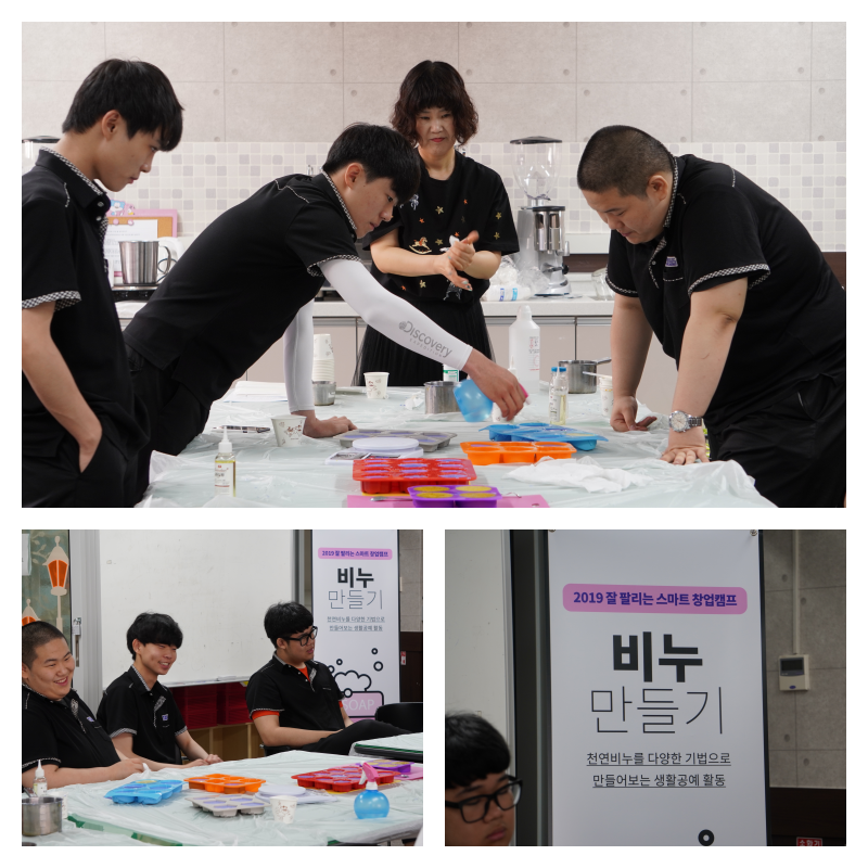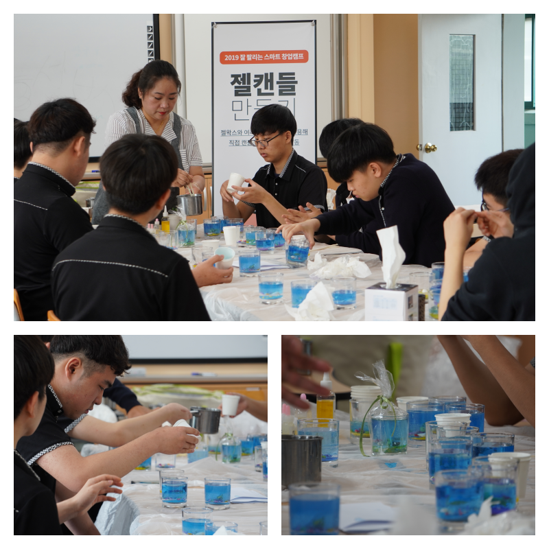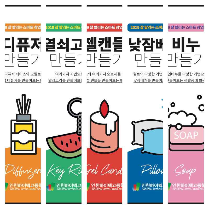 이번 "잘팔리는 스마트 창업캠프"의 제품은 5개로 젤캔들, 낮잠베게, 디퓨저, 열쇠고리, 천연비누였다. 각 반마다 CEO를 정하고 직접 제품을 만들고 담담 선생님들과 제품에 브랜드를 입히는 과정을 경험해보는 시간으로 꾸며졌다.