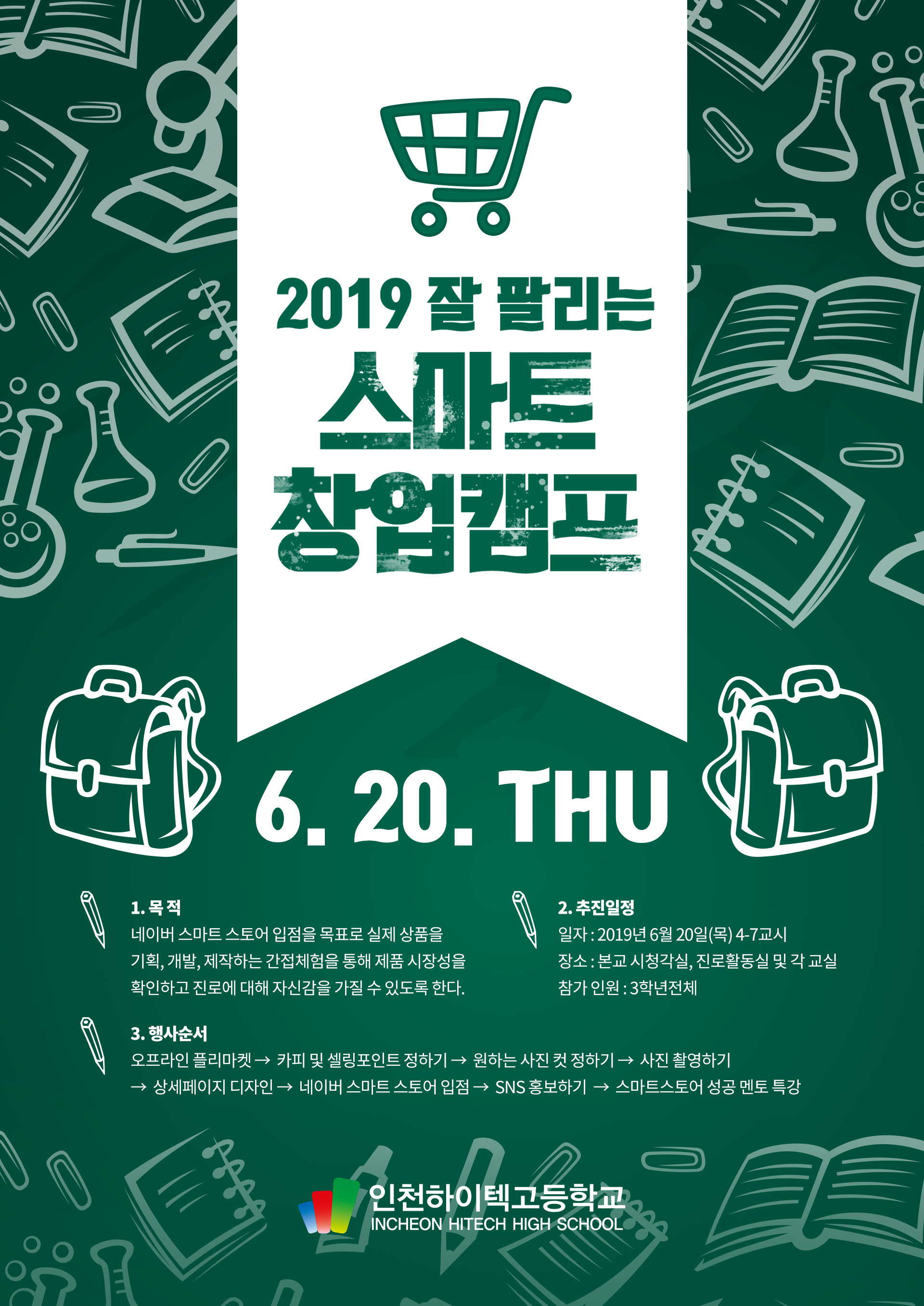 퍼스널브랜딩그룹 엠유(대표: 조연심)와 인천하이텍고등학교 손영배 진로부장님의 새로운 시도로 이번 캠프 컨셉은 "잘 팔리는 스마트 창업캠프"로 결정되었다. 학생들이 직접 제품을 만들고, 만든 제품에 네이밍, 상세페이지, 사진촬영, 카피, 가격 등을 모두 거쳐 네이버 스마트스토어에 입점하는 방식으로 진행되었다.
