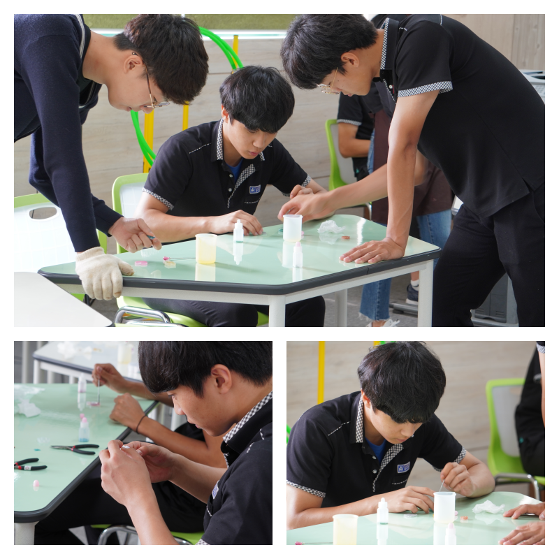 오전 1교시부터 3교시까지는 각 반마다 정해진 제품을 직접 만들어보는 시간을 가졌다. 얼마나 열심히 만드는지 사진만 봐도 현장분위기를 고스란히 느낄 수 있을 정도의 열정 그 자체였다.
