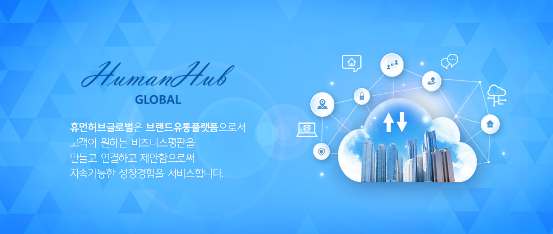 휴먼허브글로벌은 브랜드유통플랫폼으로서 고객이 원하는 비즈니스평판을 만들고 연결하고 제안함으로써 지속가능한 성장경험을 서비스합니다.