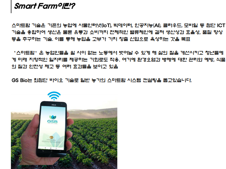 GS BIO의 사업은 세계 각국의 정부와 협의하여 식량공급 대책에 기여하는 것입니다.