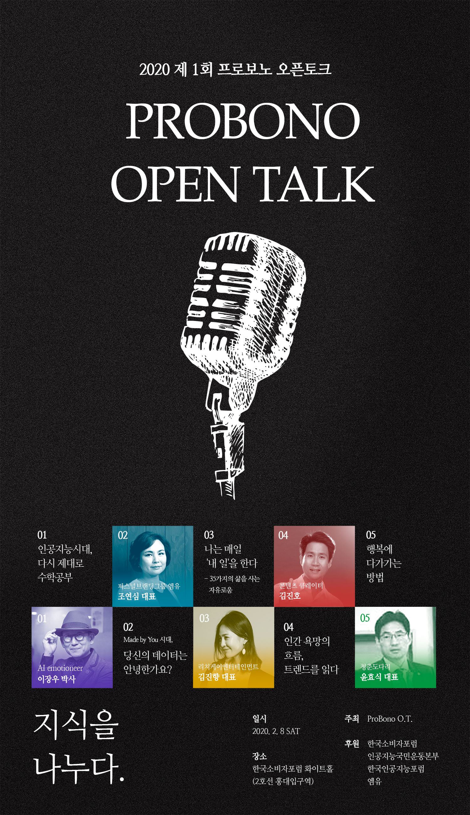 2월8일(토) 오후 2시~5시 홍대입구역 근처에 위치한 한국소비자포럼 화이트홀에서 프로보노오픈토크 행사에 초대합니다.