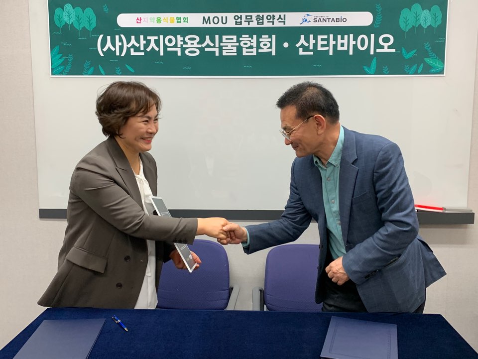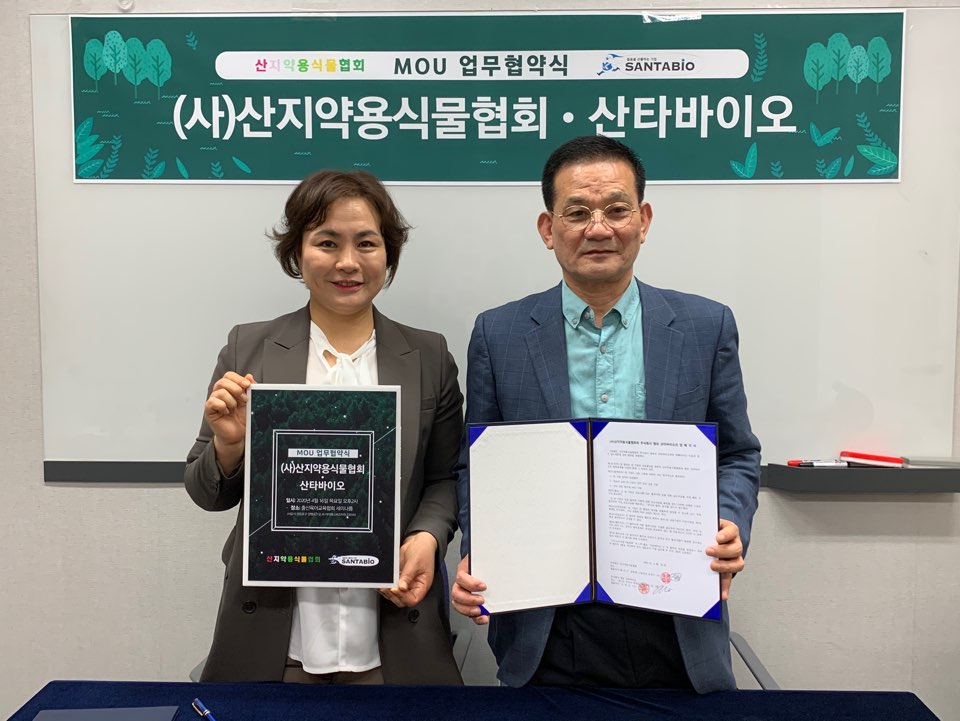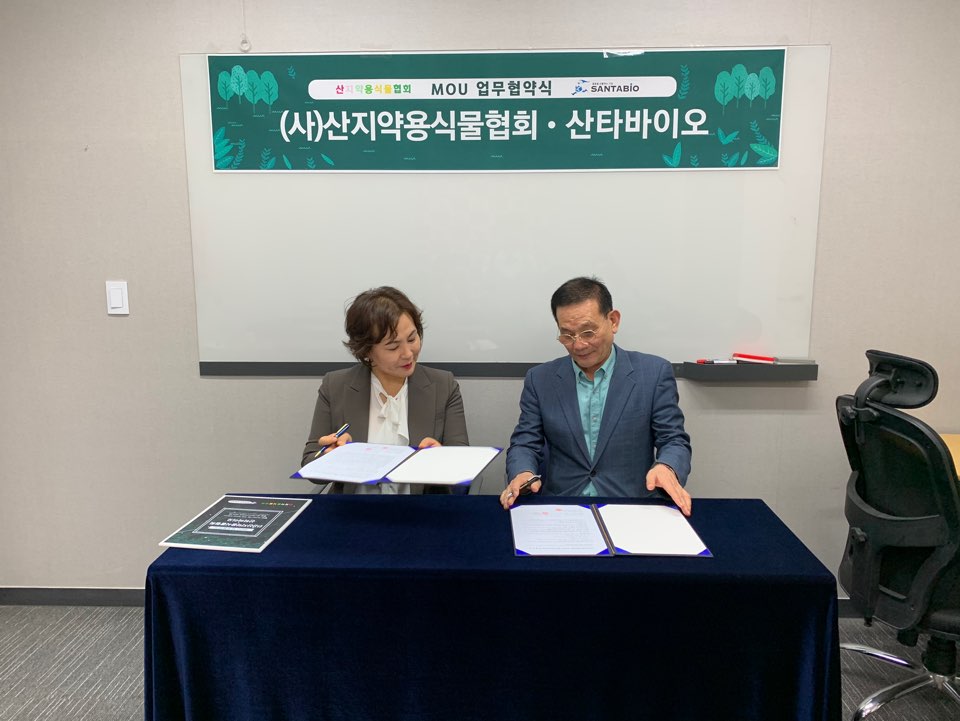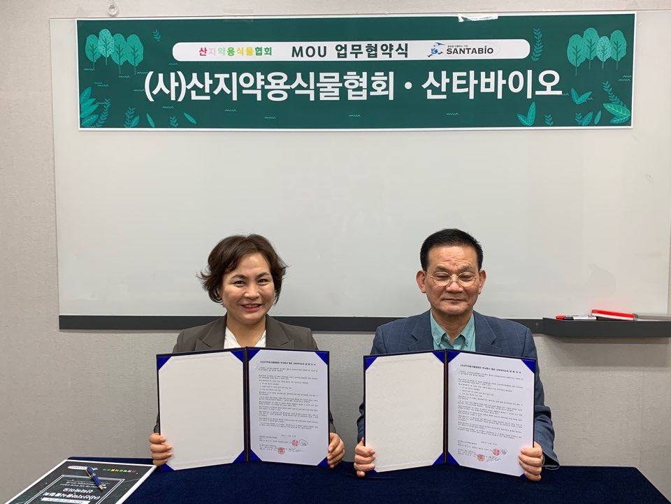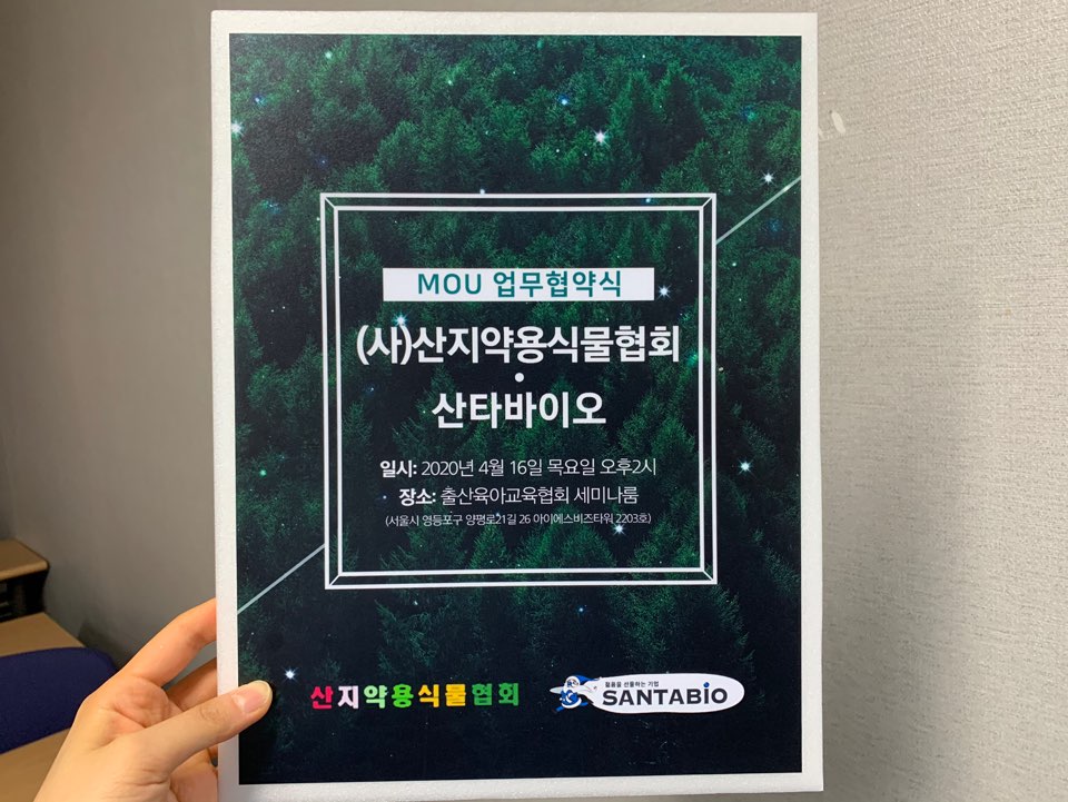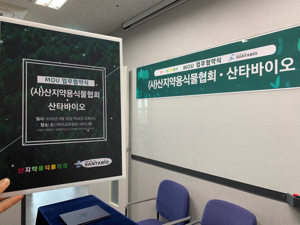 출산육아교육협회 컨퍼런스홀애서 사단법인 산지약용식물협회 윤경수 중앙회 사업단장과 (주)엠유 산타바이오 조연심 대표와의 업무협약식이 진행되었다. 유비엔국제재단 정혜정 이사장, 천삼본가 서민경 대표, 산타바이오 메디컬프로덕트유통사업단장 김관우, 엠유 디자이너 김지원이 함께 했다.