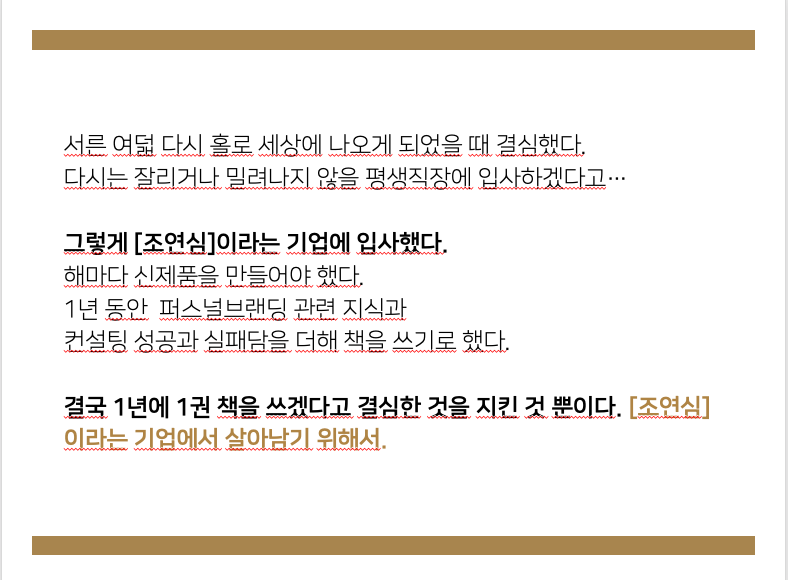 이제 <퍼스널브랜딩에도 공식이 있다>를 쓴 조연심의 셀프 인터뷰다.