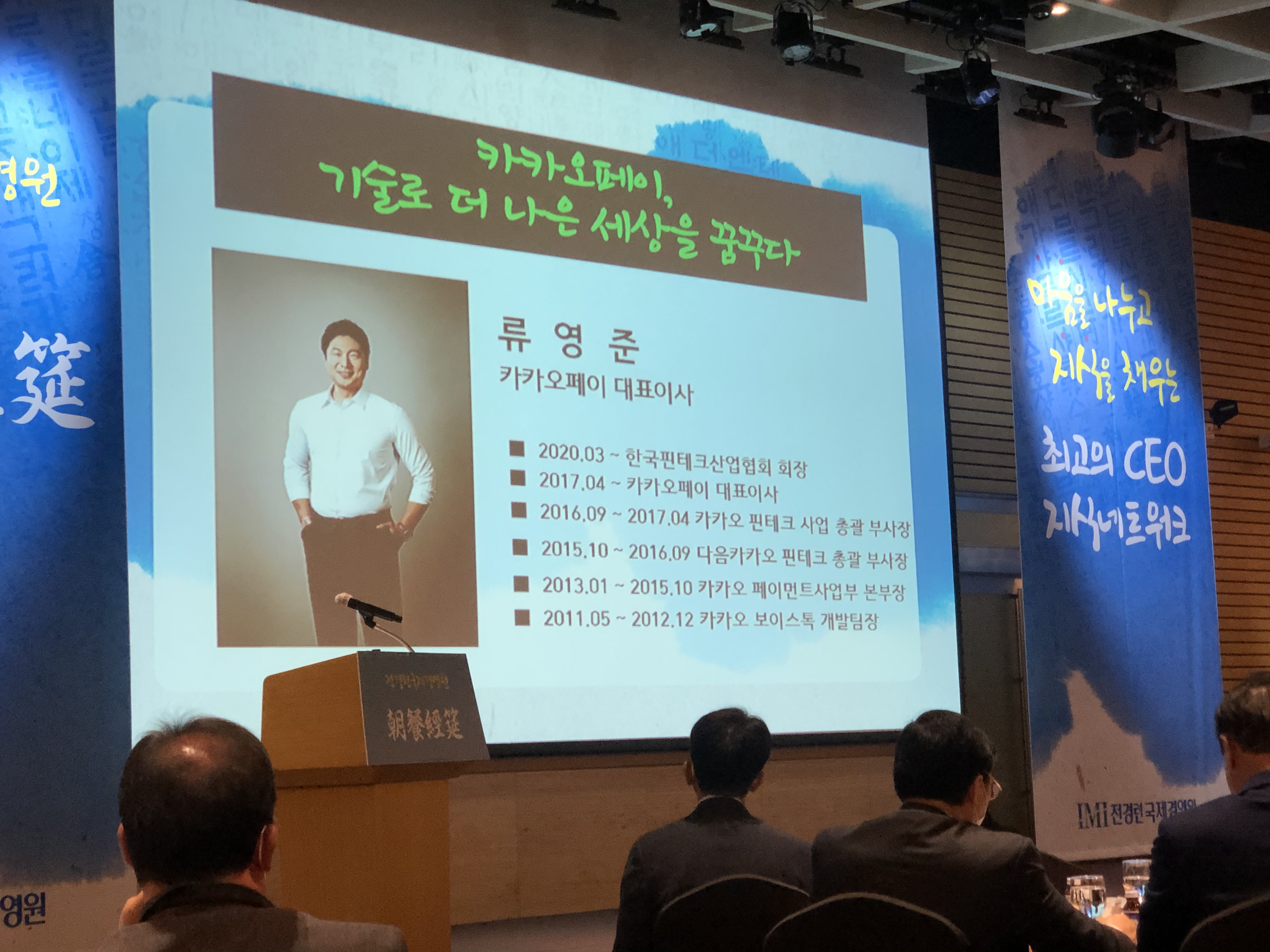 IMI 전경련 조찬경연에 초대받아 카카오페이 류영준 대표 강연을 들었습니다.