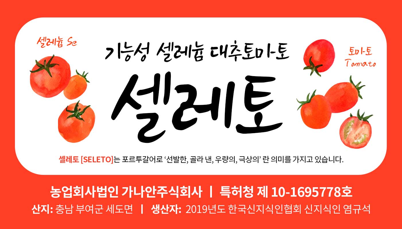 코로나19 때문에 여느 때보다 건강에 신경쓰는 사람들이 많아졌다. 그래서일까? 세계 10대 슈퍼푸드 중 하나인 토마토에 대해 관심이 높다. 완전식품인 토마토에 면역기능이 탁월한 셀레늄을 첨가해 맛과 영양 두 마리 토끼를 동시에 잡은 방울토마토가 있다. 바로 기능성 셀레늄 대추토마토 ‘셀레토’다. 방울토마토 주산지 충남 부여군 세도면 한 시설하우스에서 대를 이어 50여년 째 방울토마토만 고집해온 진짜 농삿군, 염규석 대표를 만났다. 일반 토마토에는 없는 건강물질 ‘셀레늄’을 넣어 맛은 기본, 건강까지 신경쓴 특별한 방울토마토, 셀레토를 만든 이유를 물었다.