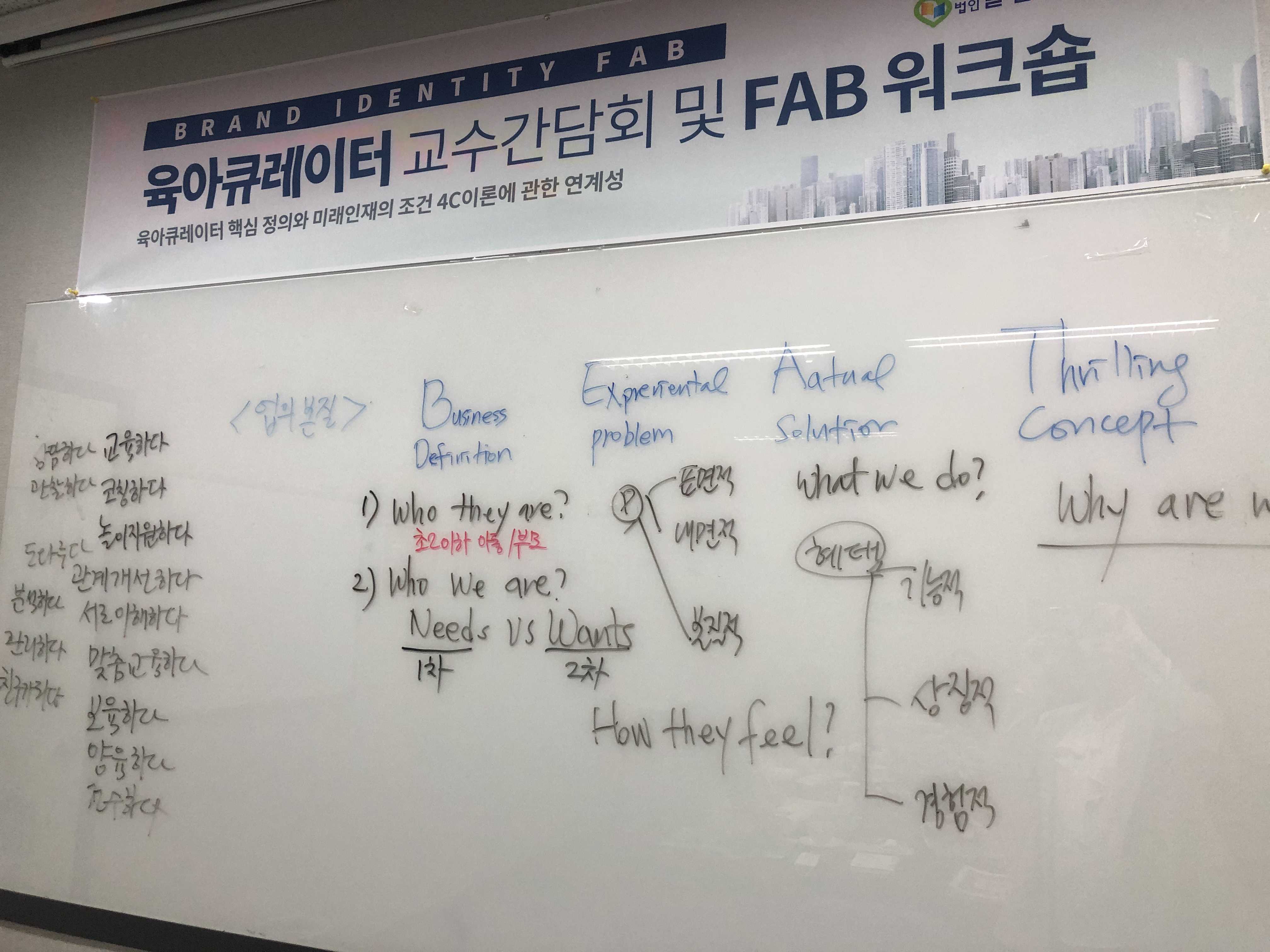 이 질문에 대한 답을 찾다보면 결국 우리가 "어떤" 사람인지 알게 됩니다. 이 과정을 거쳐 완성된 FAB는 다음과 같아요.