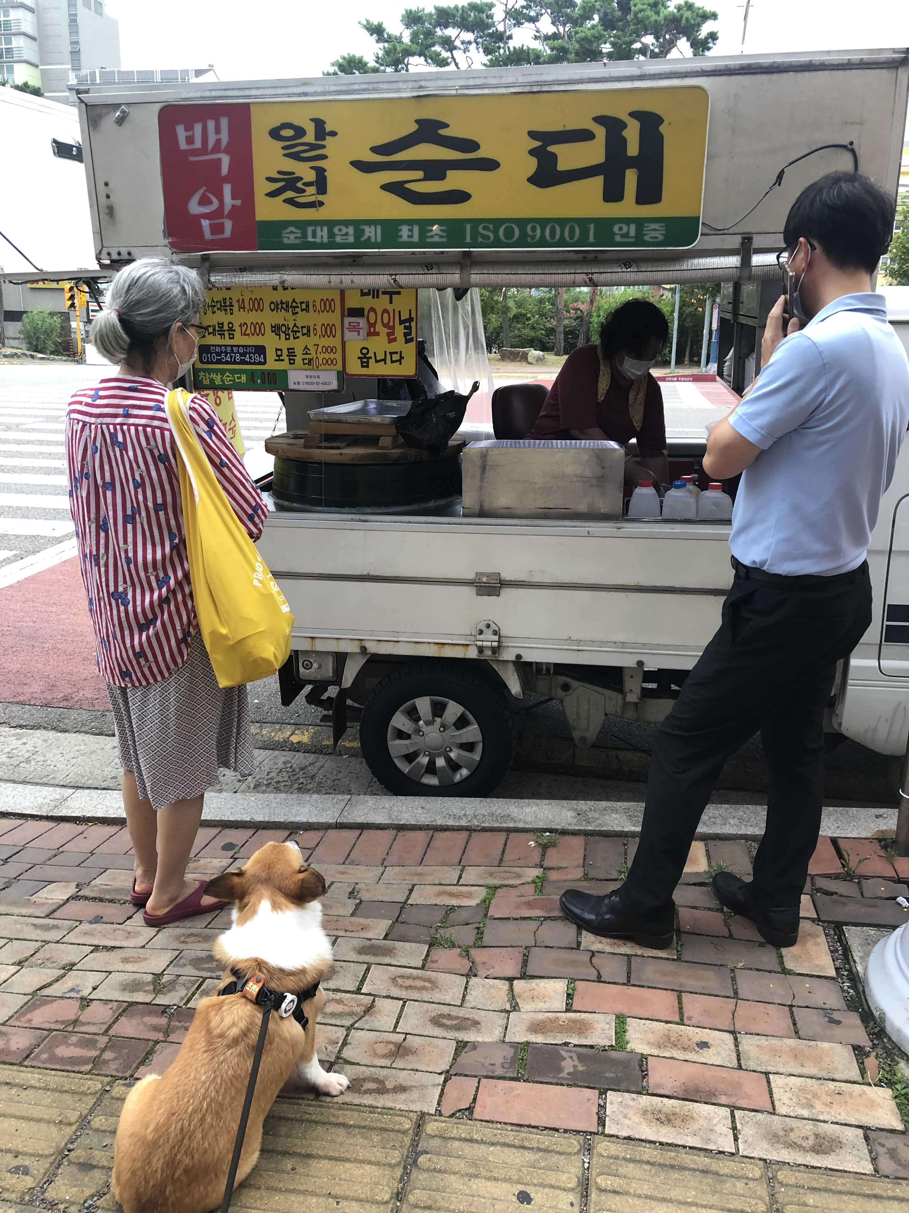 넷, 동네 산책 나갔다가 순대볶음 해주는 트럭 앞에서 줄서서 기다리는 택이. 덕분에 뒤에 서 계신 분이 한참을 기다리다가 믈어보시네요. 주문하실거냐고? ㅋㅋ