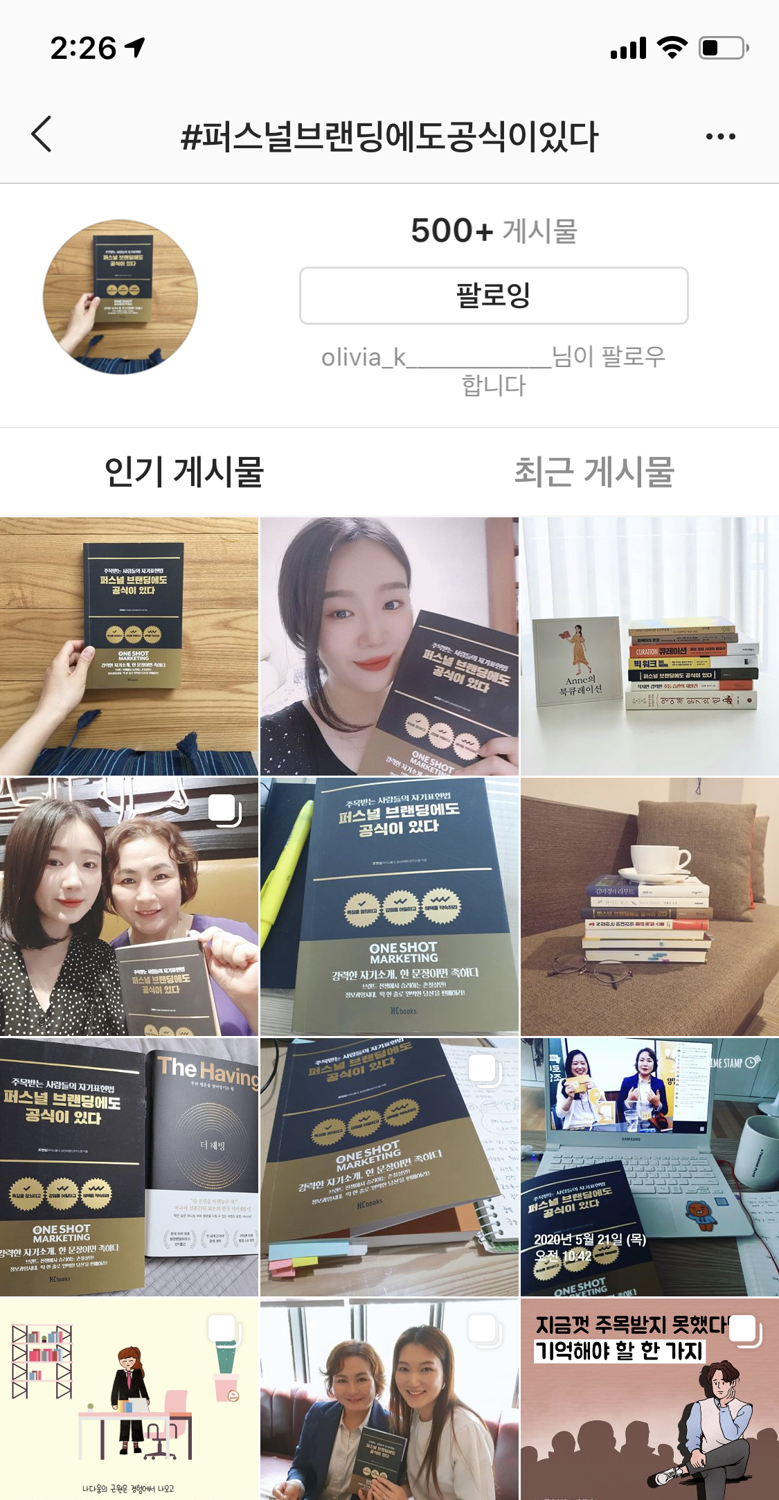 네이버 검색 [퍼스널브랜딩] 책 카테고리 중 베스트셀러, 자기계발, 경제경영 분야 수 백권의 책 중 1위로 검색이 되고, 인스타그램 피드에서도 하루 수 십개의 책 관련 태그가 올라와 540여개가 넘는 포스트가 발행되었습니다.