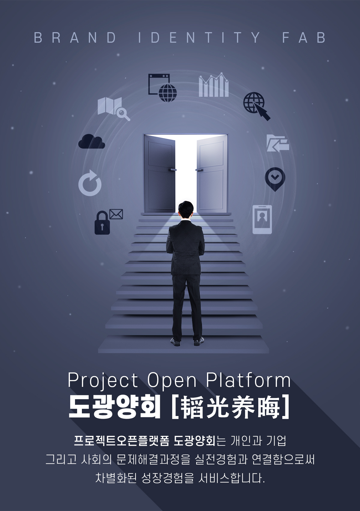 "프로젝트오픈플랫폼 도광양회는 개인과 기업 그리고 사회의 문제해결과정을 실전경험과 연결함으로써 차별화된 성장경험을 서비스한다."