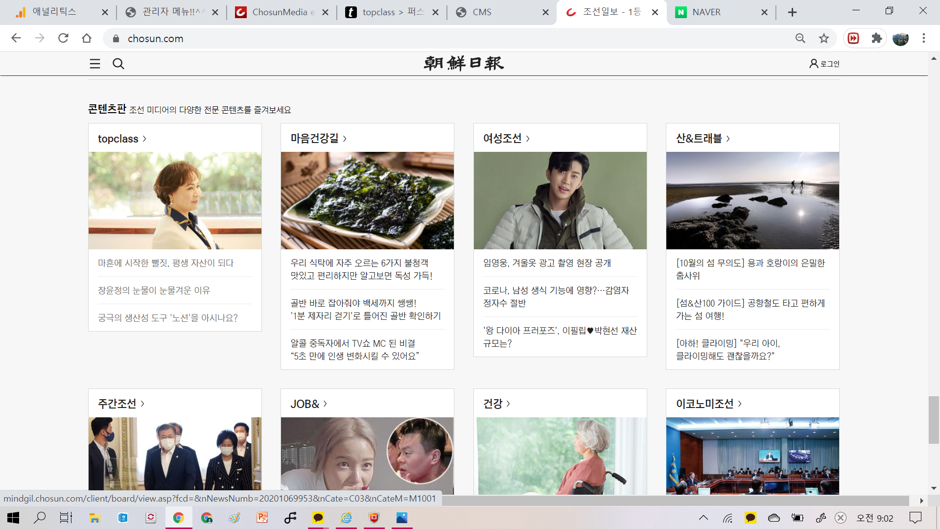 하나, 조선일보 메인에 올라간 #톱클래스 #조연심 인터뷰가 인기기사 3위에 올랐다고 #이근미 작가님이 알려주셨어요. 얏호!!