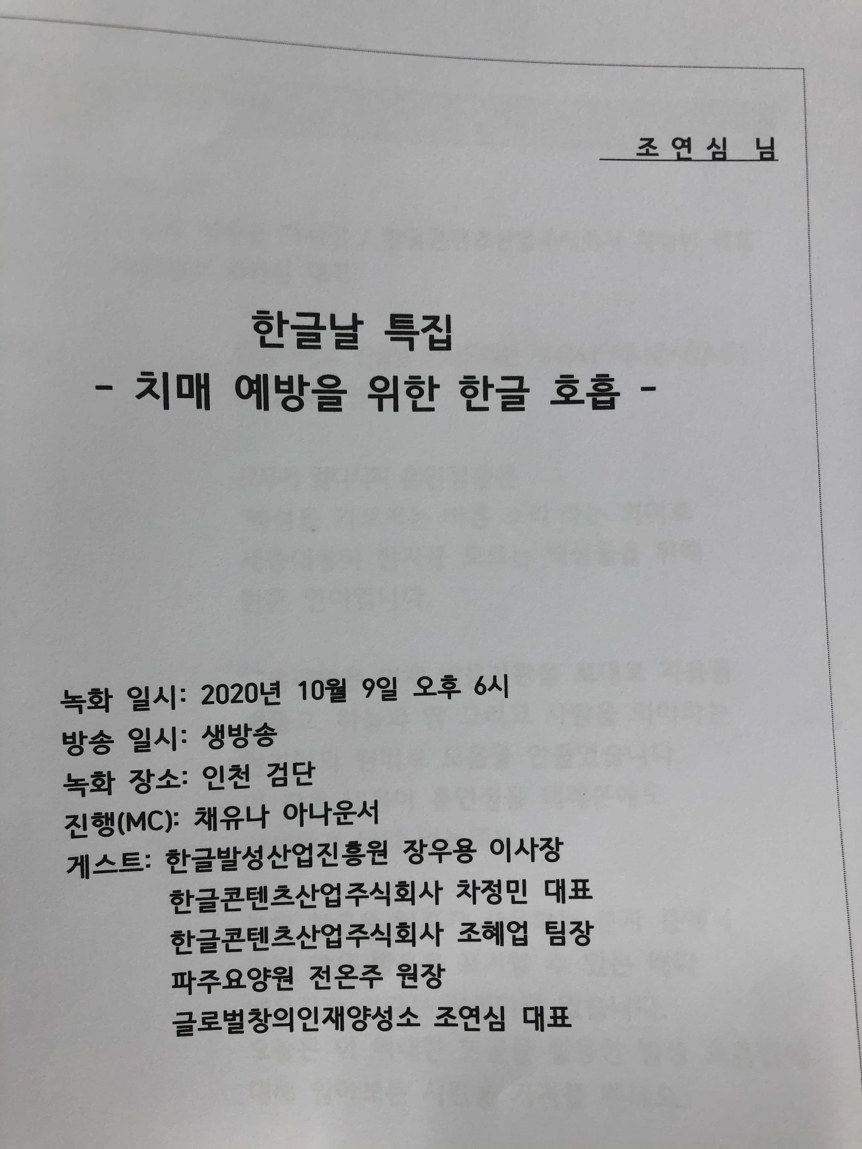 둘, 한글날 특집 라이브 방송했어요. #한글호흡창시자 #장우용 원장님과 관련 분들이 모여 유튜브 라이브로 #한글발성호흡에 대해 이야기하고 왔어요. 통통튀며 이야기 잘했다고 담부턴 그냥 진행자 하랍니다. ㅋㅋ 진행병이 도져서 결국 일을 만들었네요.