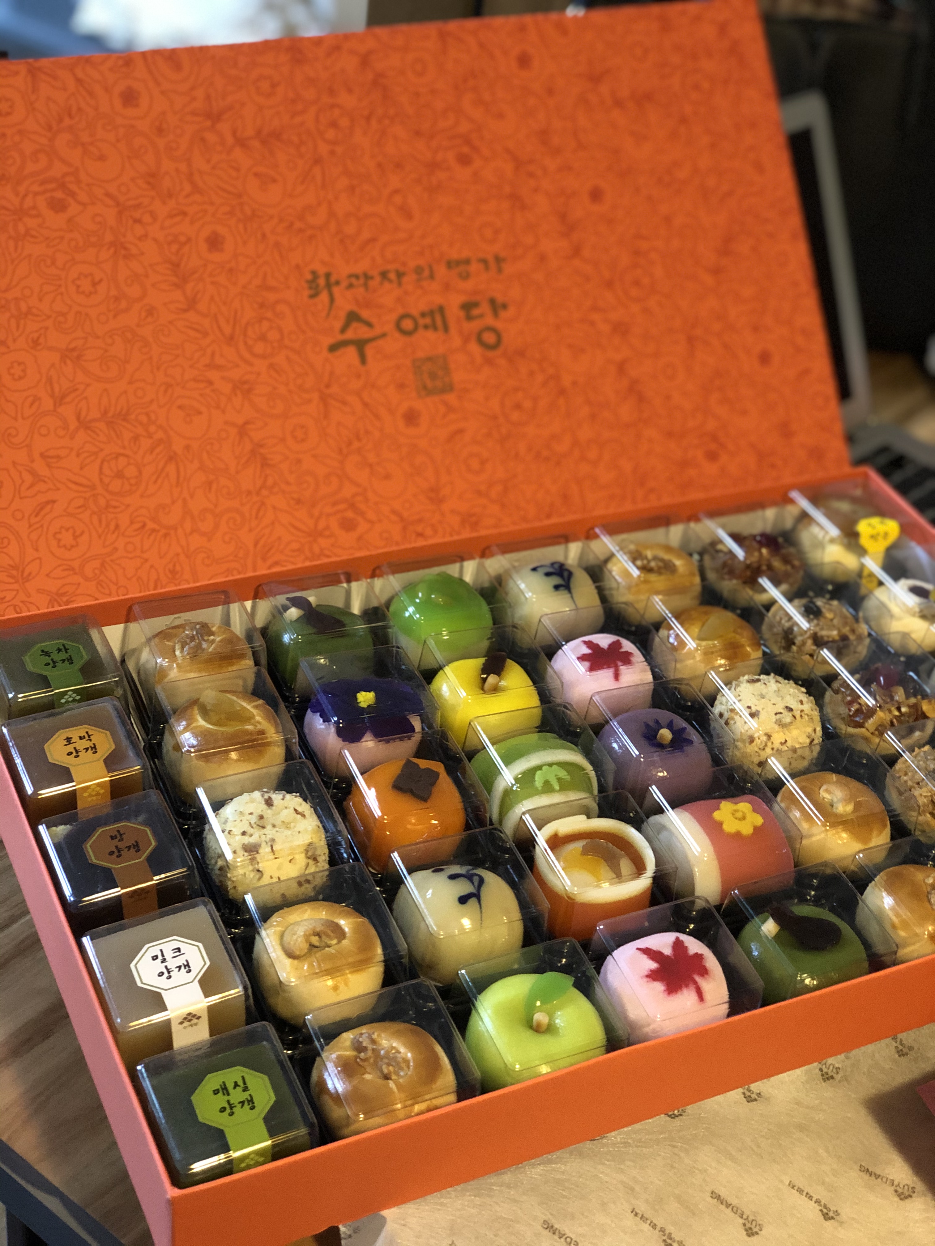 넷, 이렇게 이쁜 화과자는 난생 처음이라서.. 울 택이가 동네 마늘이네서 고구마순 얻어왔길래 화과자 몇 개를 보답으로 보냈고, 냉동실에 넣어두고 커피타임에 하나씩 후식으로 먹을 수 있게 쟁여놓았답니다.