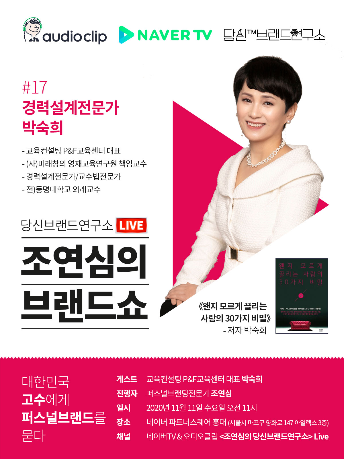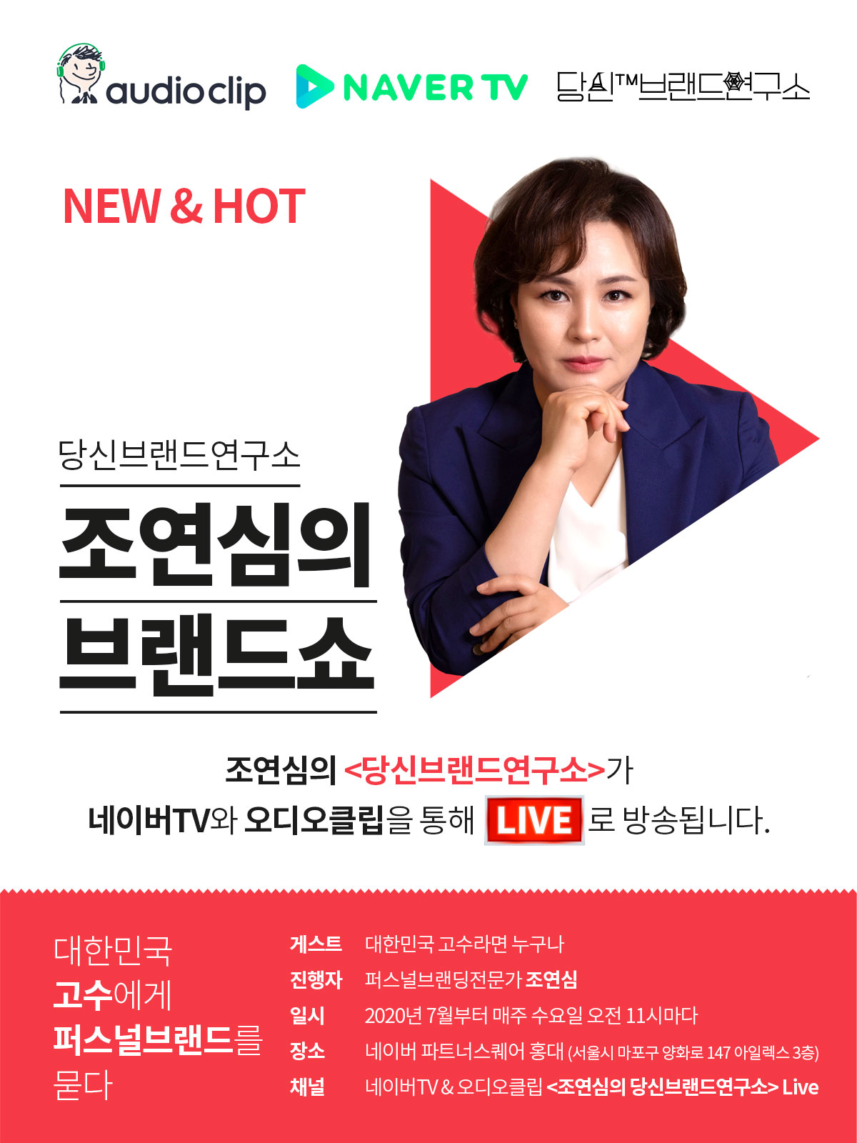 네이버 오디오클립 x 네이버TV #당신브랜드연구소 #조연심의브랜드쇼 11월 초대게스트가 확정되었습니다.