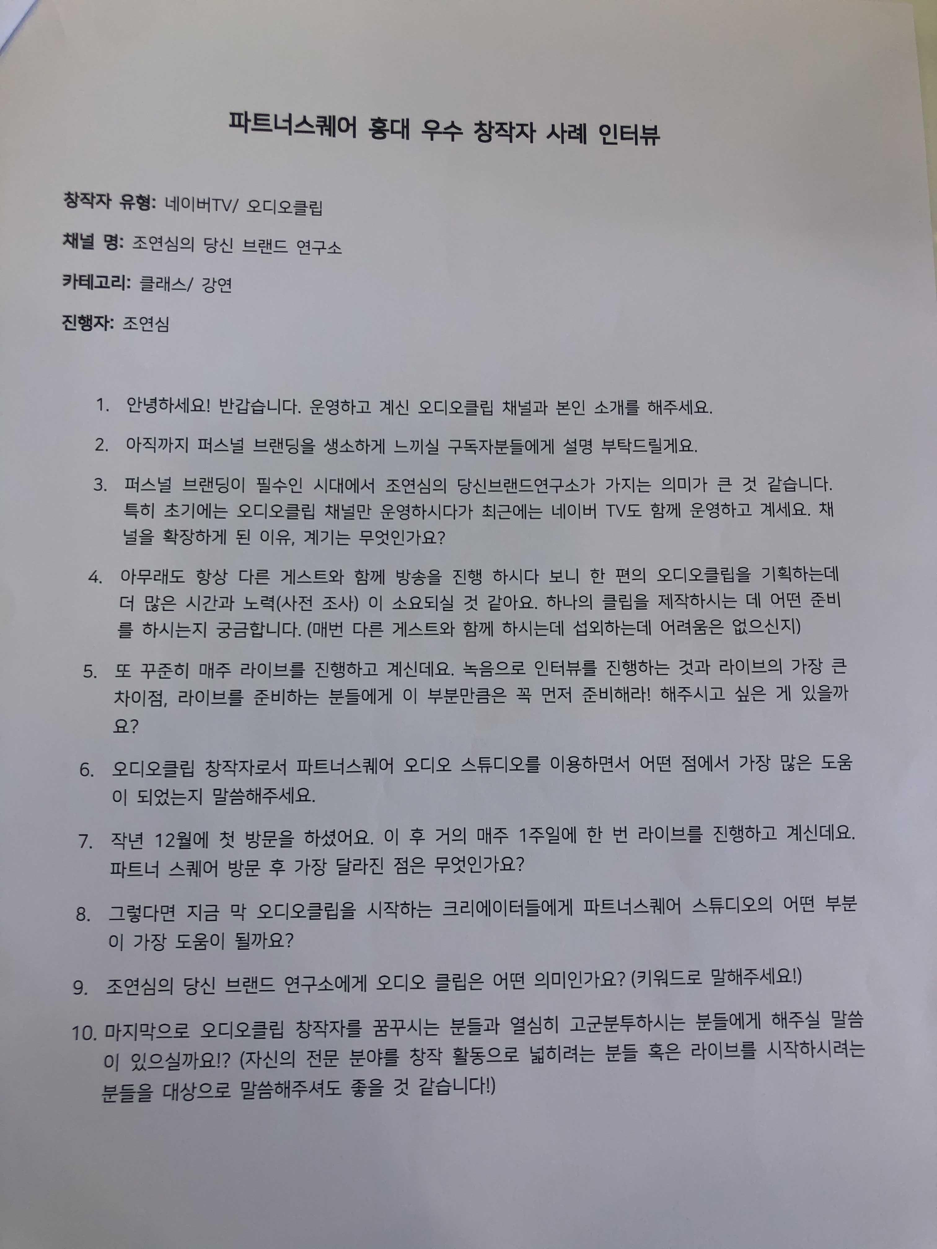 네이버 파트너스퀘어 홍대 우수 창작자로 선정되어 공식 인터뷰를 하게 되었습니다.