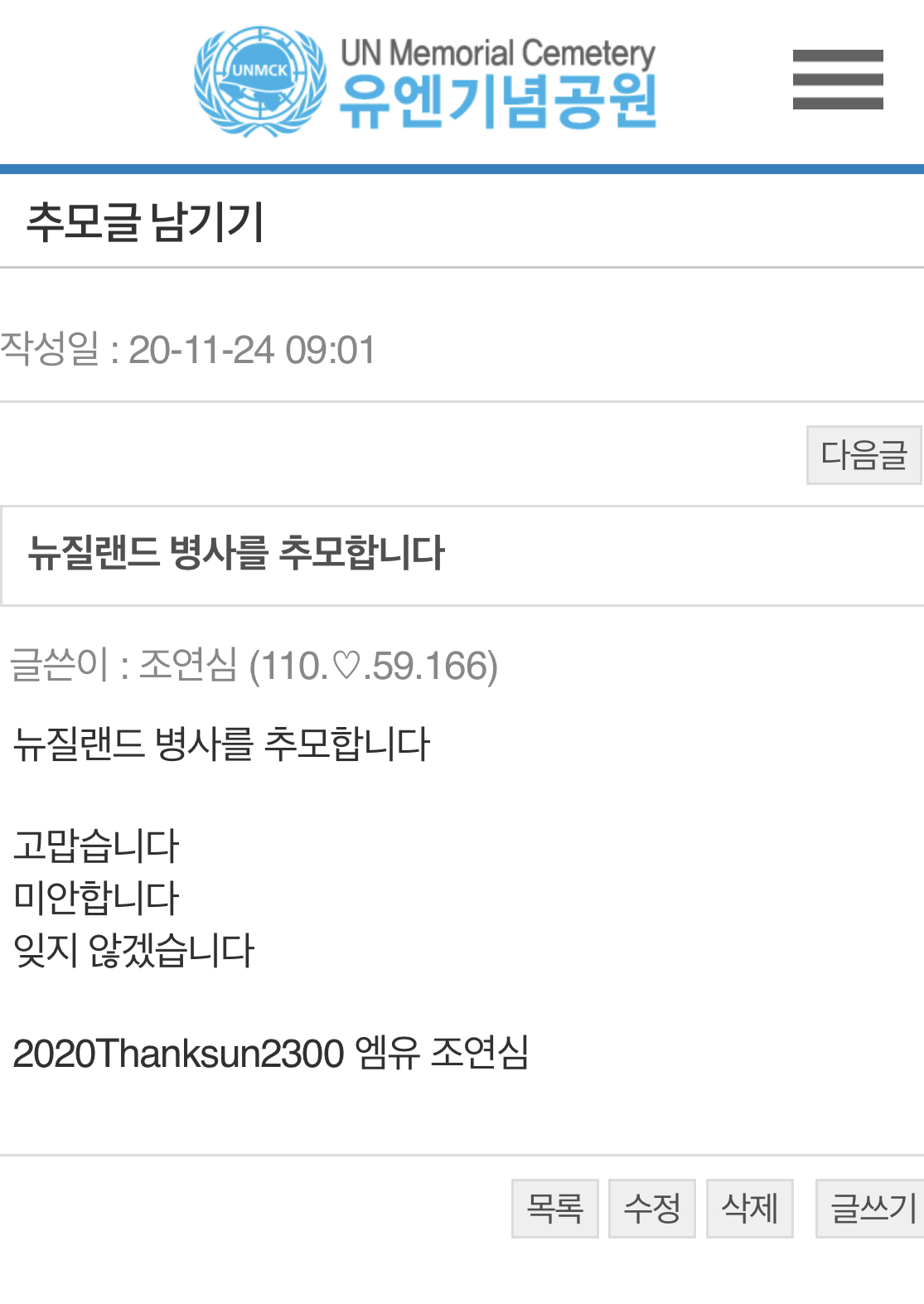 (#5일차 #2020ThanksUN2300 #7일간의추모 #고맙습니다 #미안합니다 #잊지않겠습니다 #부산유엔공원 태그 필수)