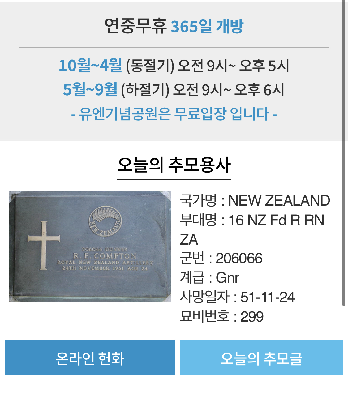 1. 유엔기념공원 https://www.unmck.or.kr/ 방문해서 오늘의 병사에게 헌화하고 추모글 남기기
