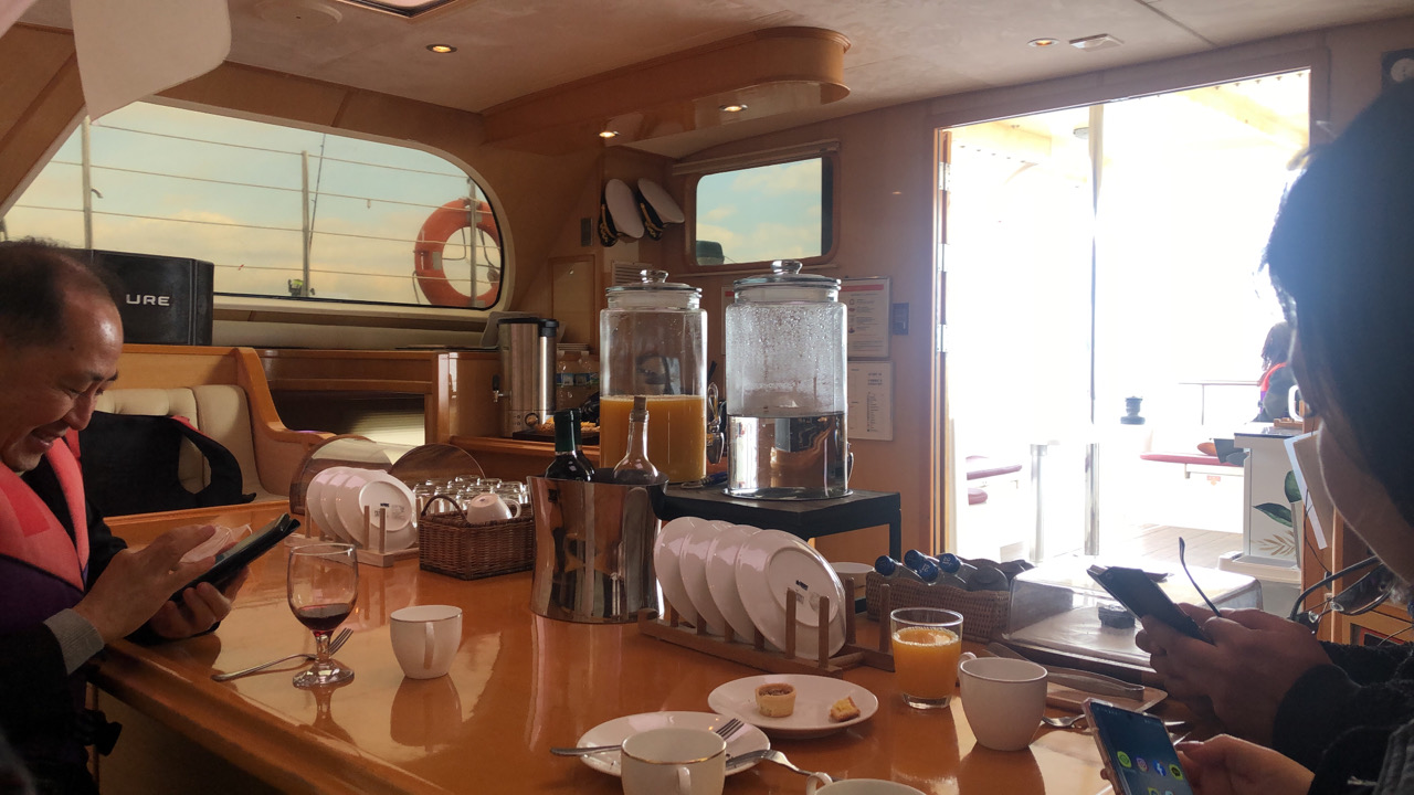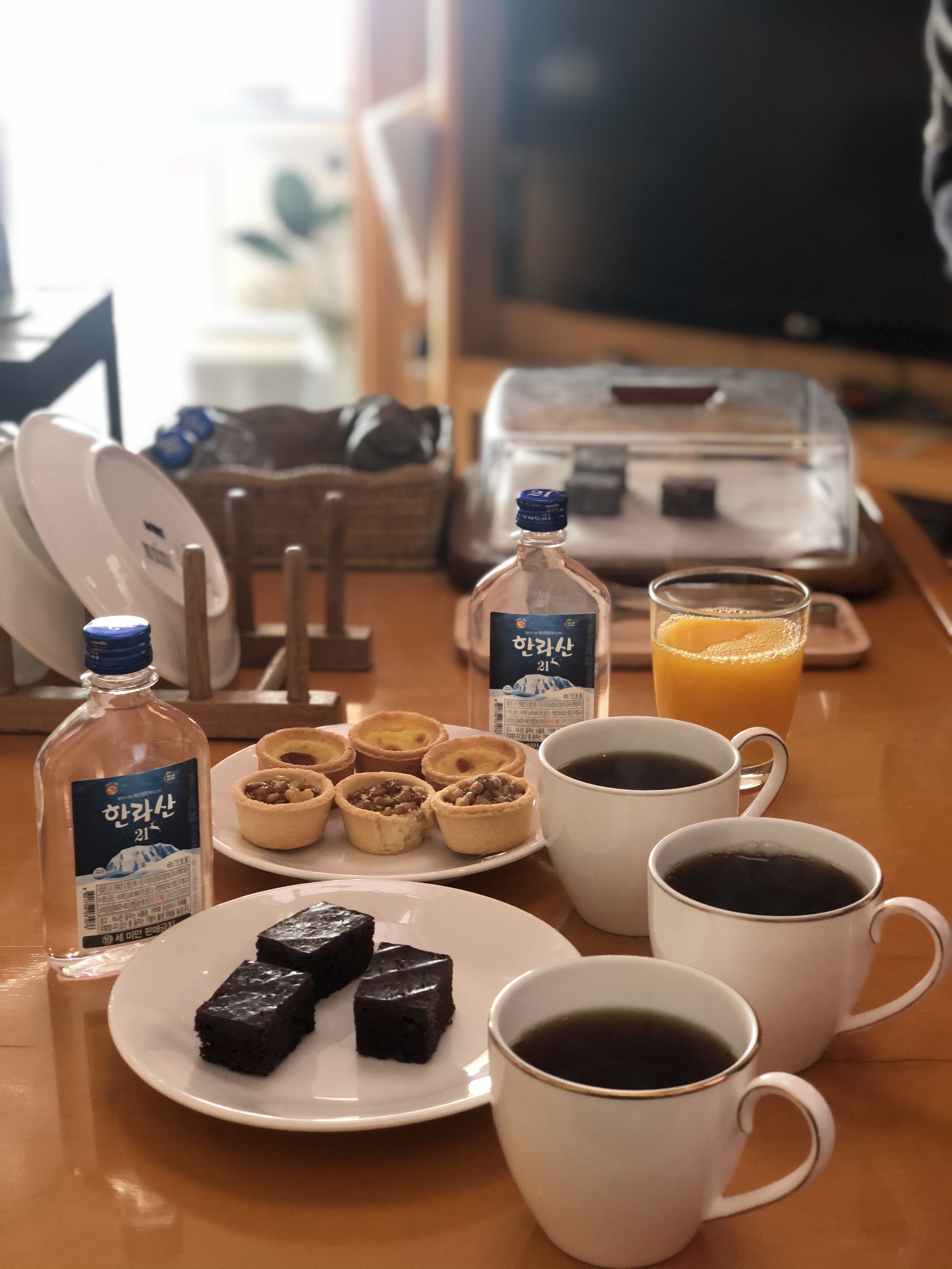 선실에서 무제한 무료로 제공되는 작고 예쁘고 맛있는 간식에 커피와 와인, 한라산소주..