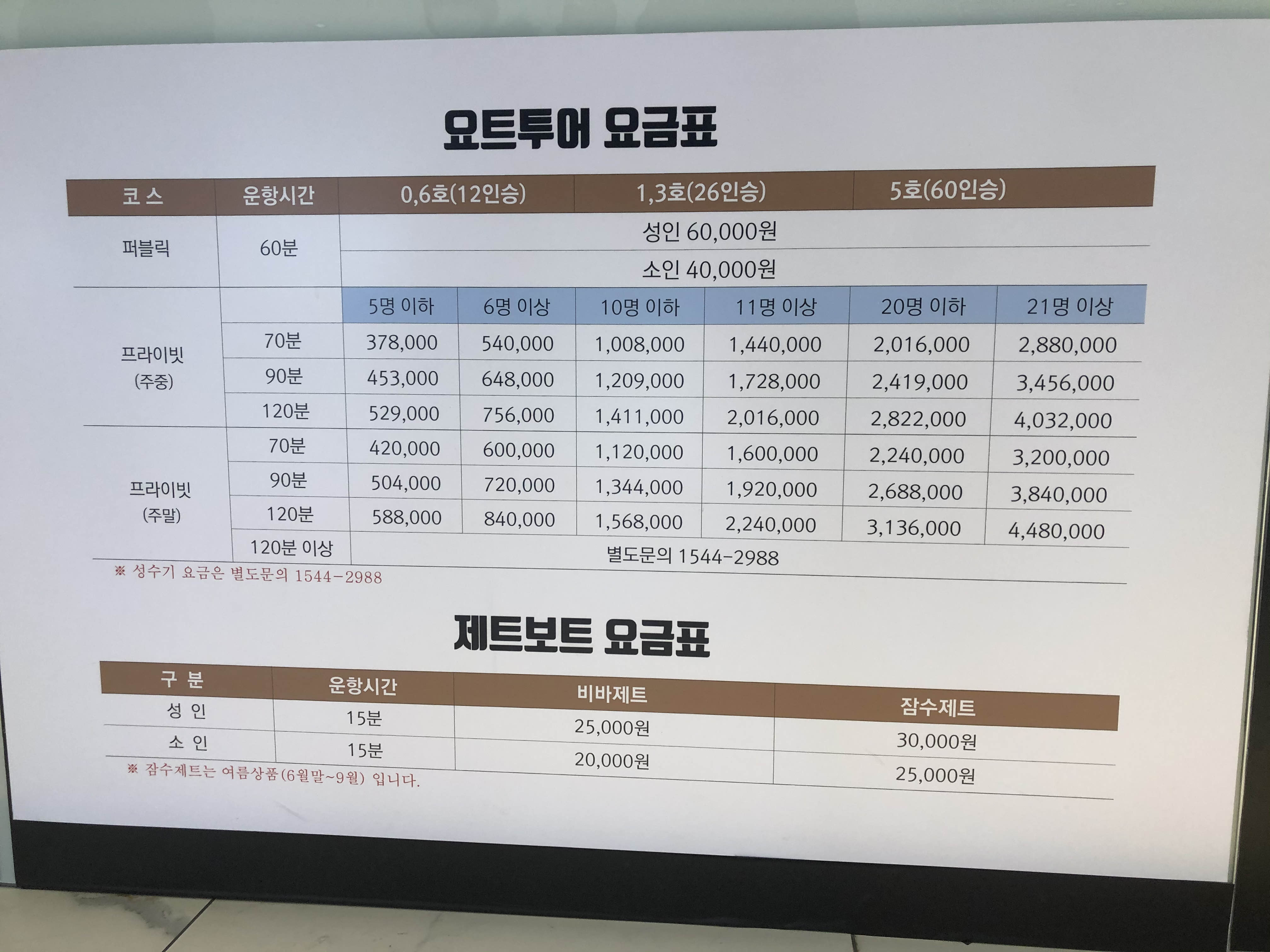 요트투어 가격표 공유해요. 연말연시 아니면 특별모임은 소규모 탑승으로 우리만의 선상파티로 하면 좋겠네요.