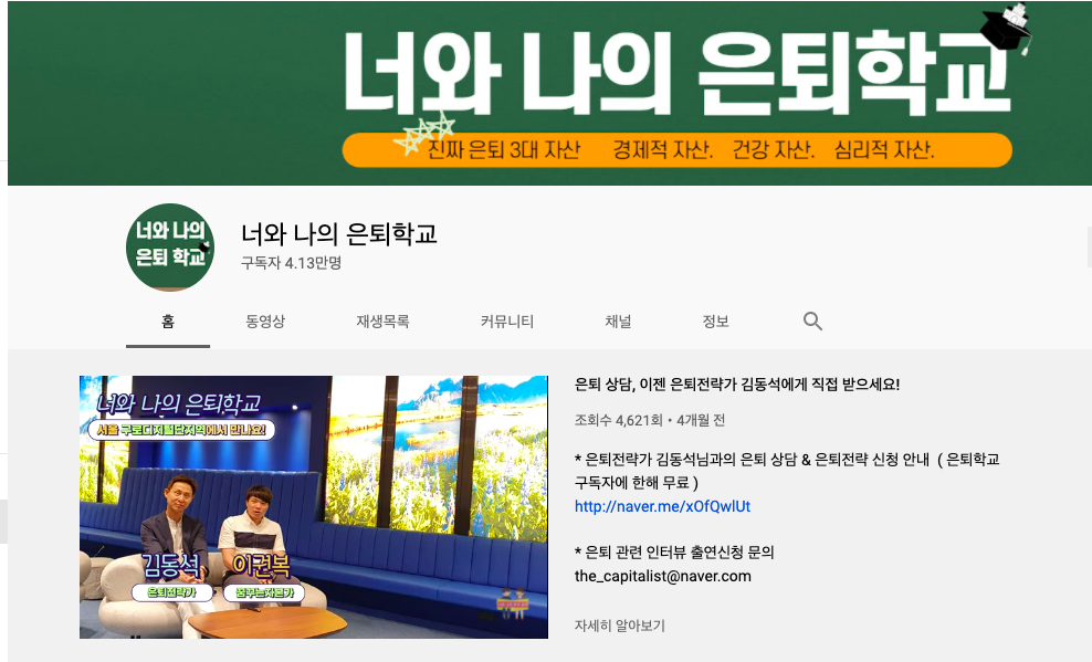www.youtube.com/c/%EB%84%88%EC%99%80%EB%82%98%EC%9D%98%EC%9D%80%ED%87%B4%ED%95%99%EA%B5%90/featured