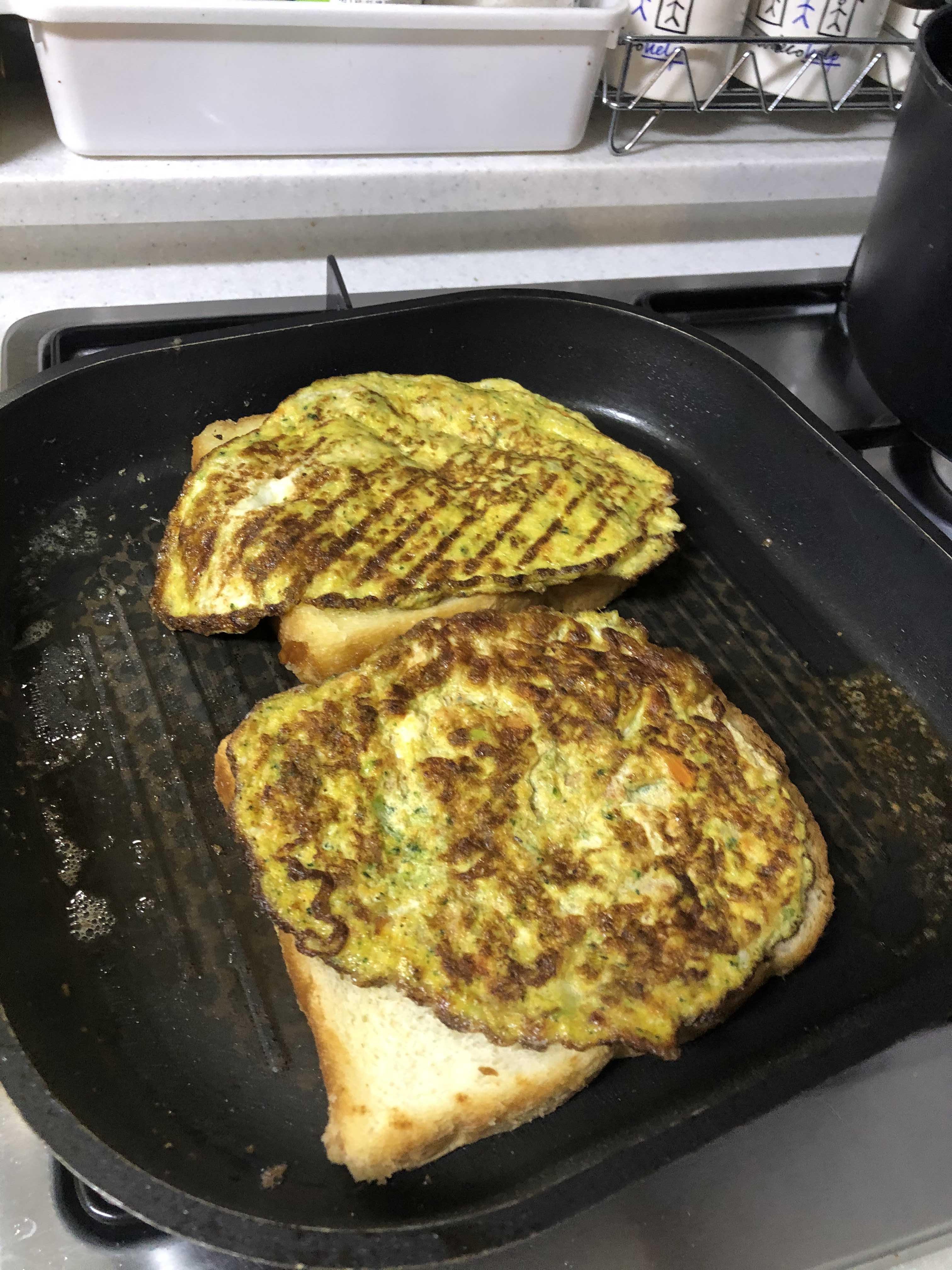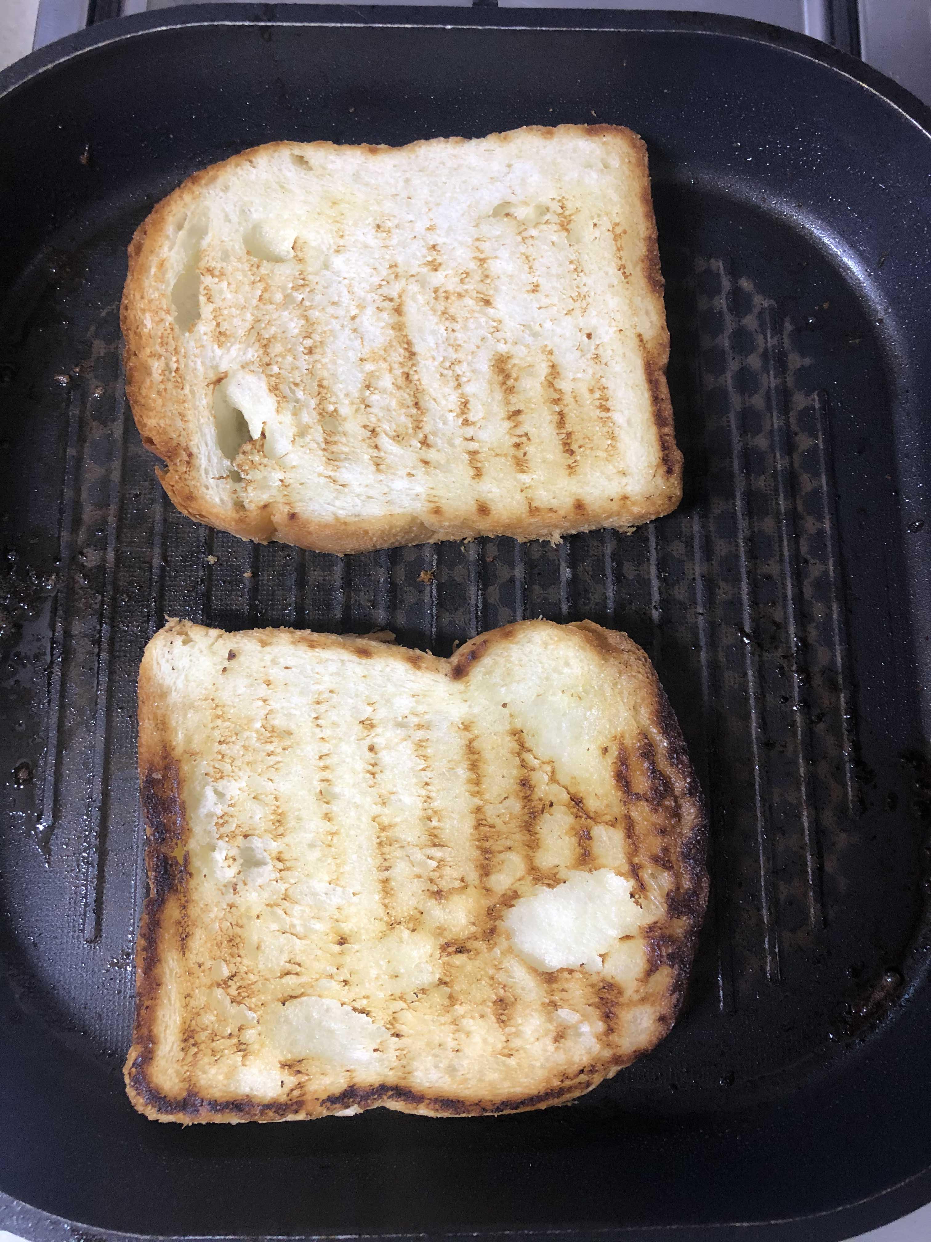 5. 버터를 두른 후라이팬에 식빵을 돌려가며 굽는다.