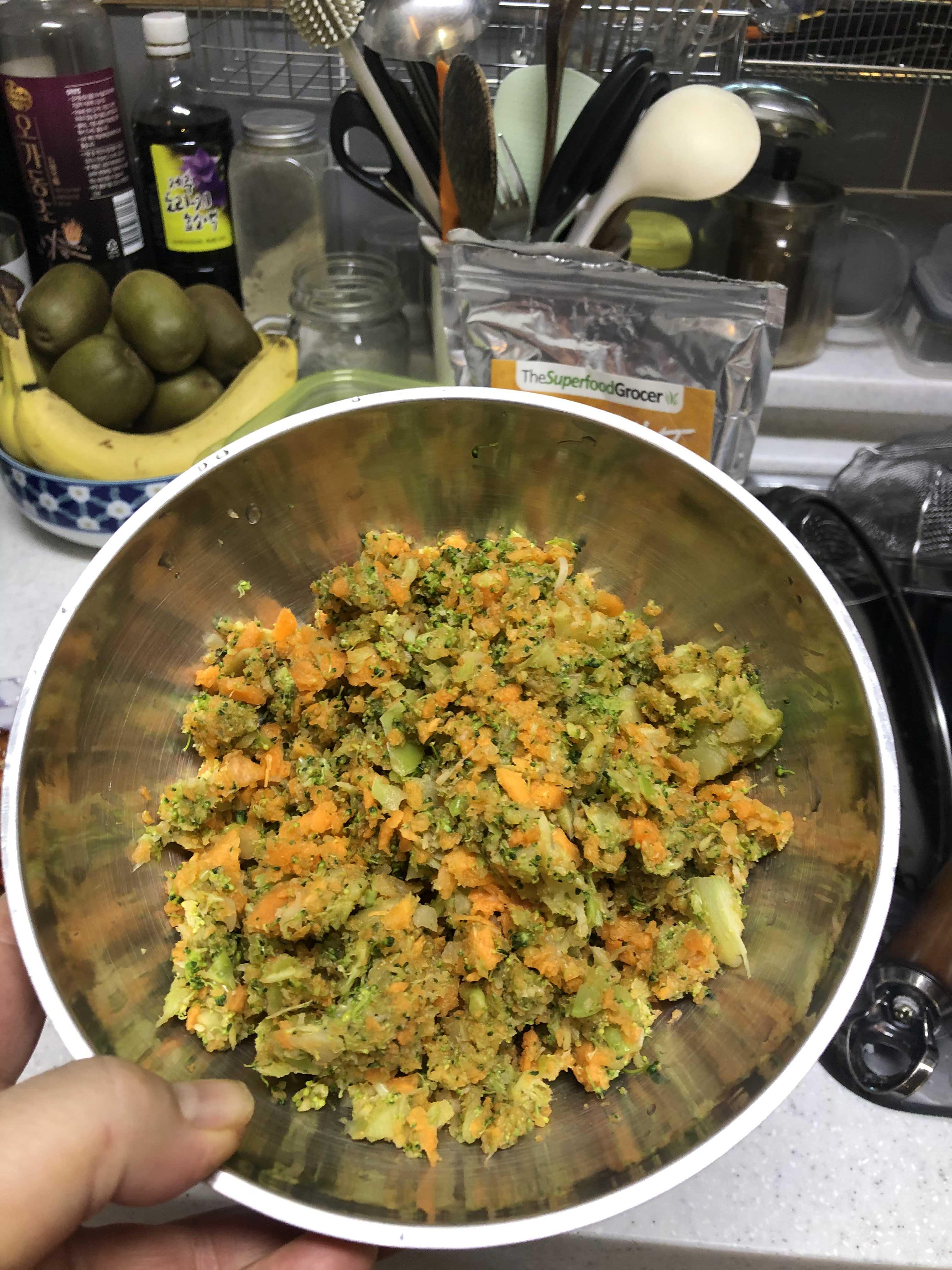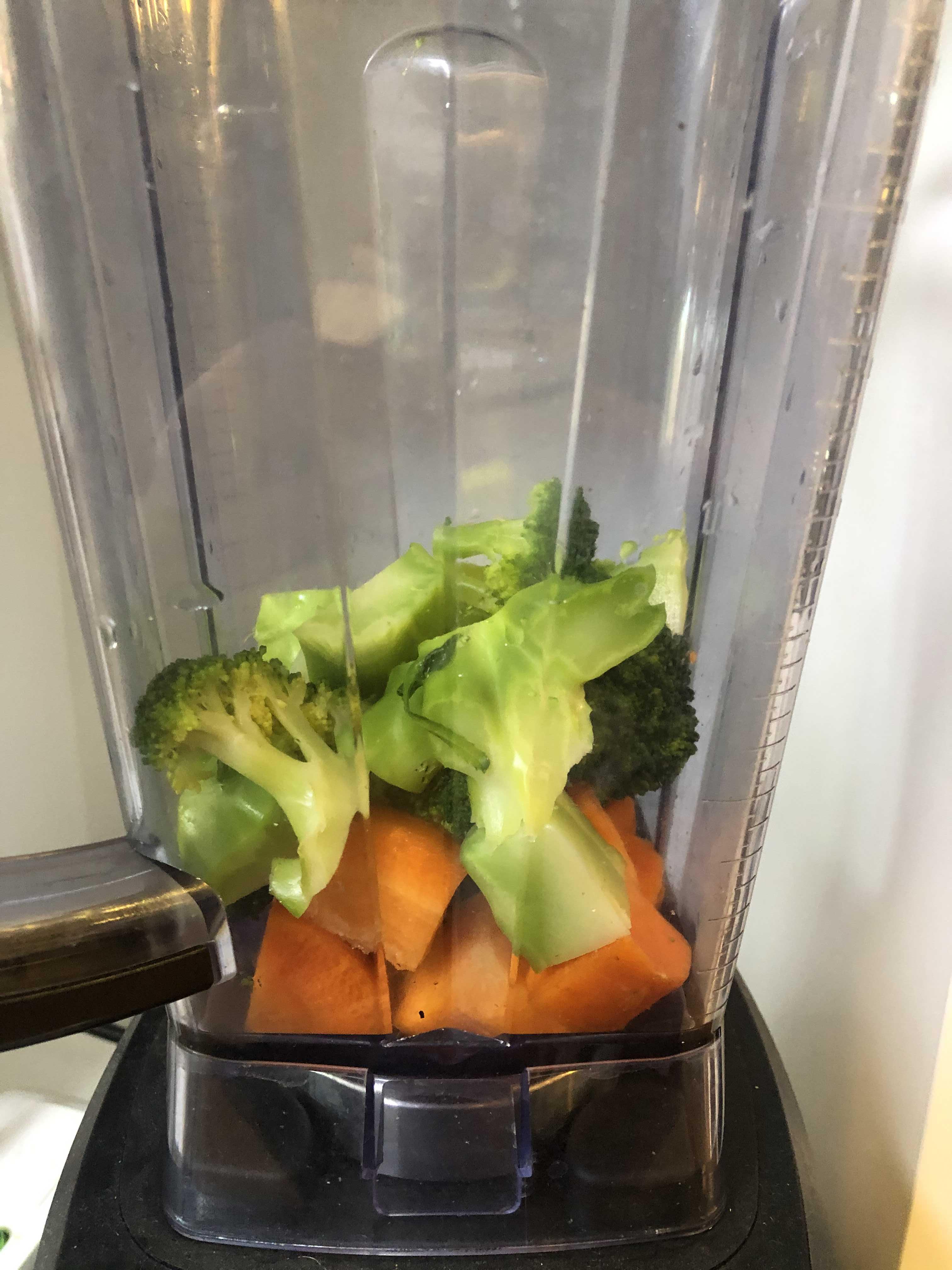 1. 삶은 브로컬리 밑둥과 제주당근을 믹서에 간다.