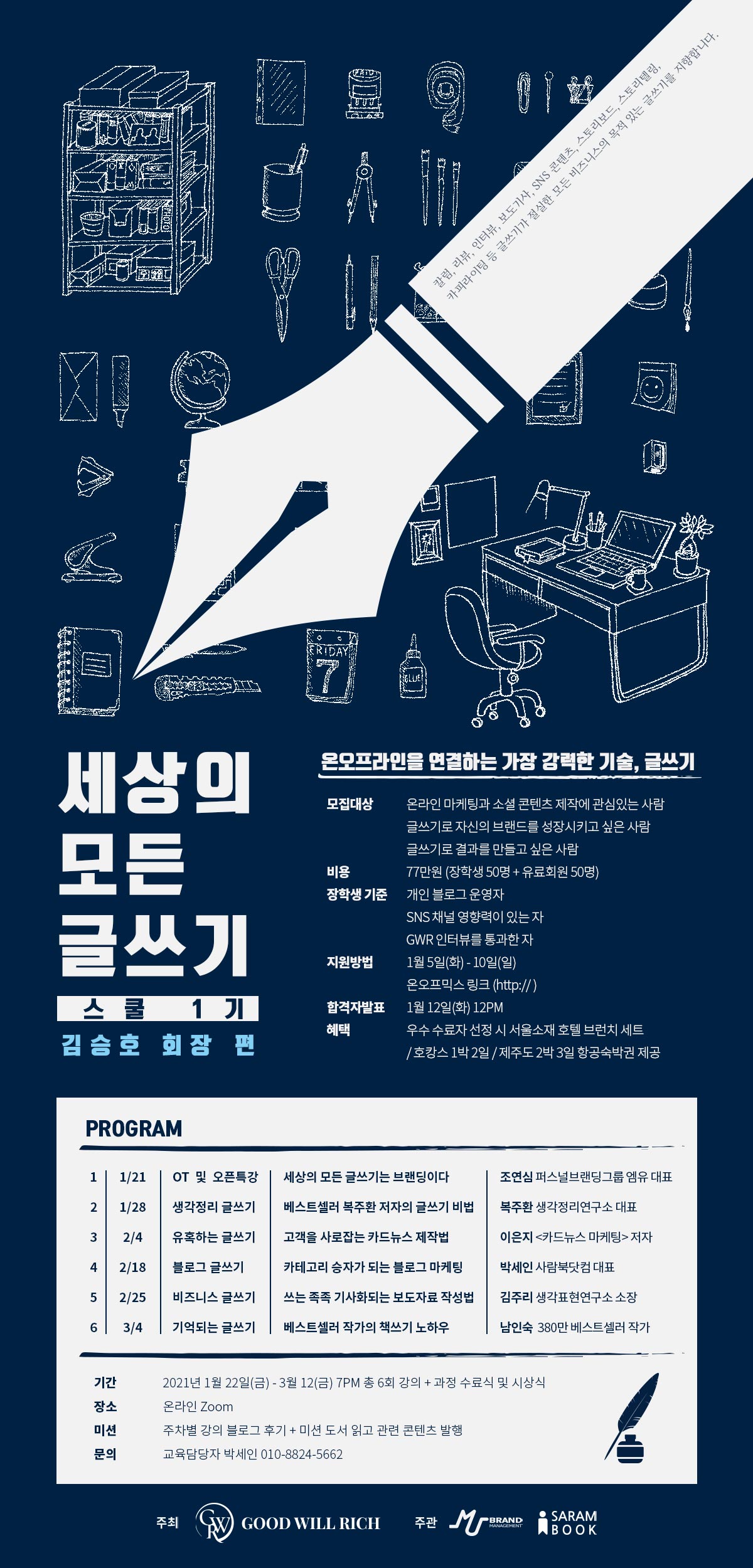 국내 최고의 강사진에게 직접 다양한 글쓰기의 노하우를 배워보는 시간입니다.