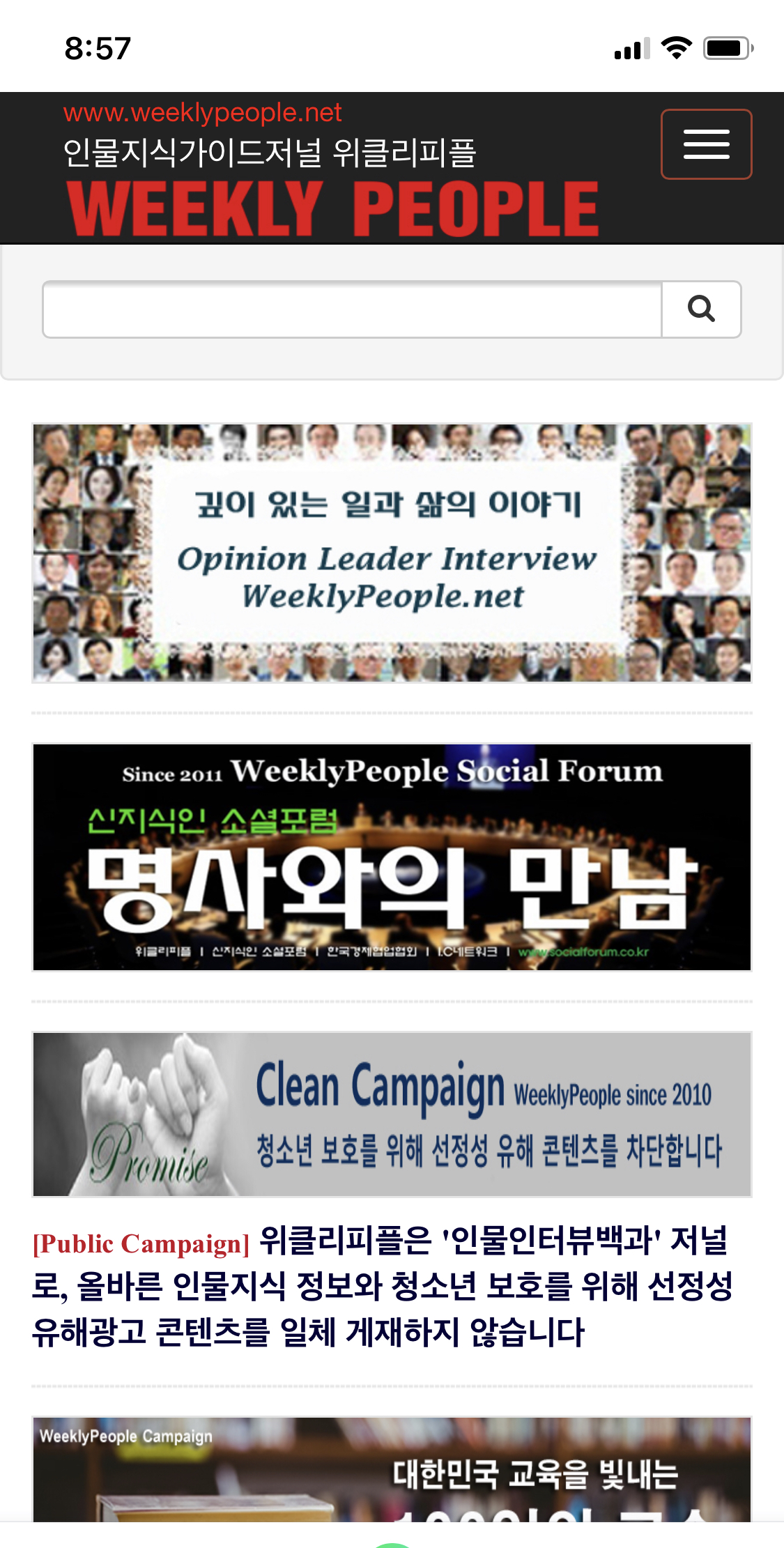 WeeklyPeople, 오피니언리더 심층인터뷰, 일과 삶의 자서전 비전스토리, 신지식인 소셜포럼, 정책뉴스