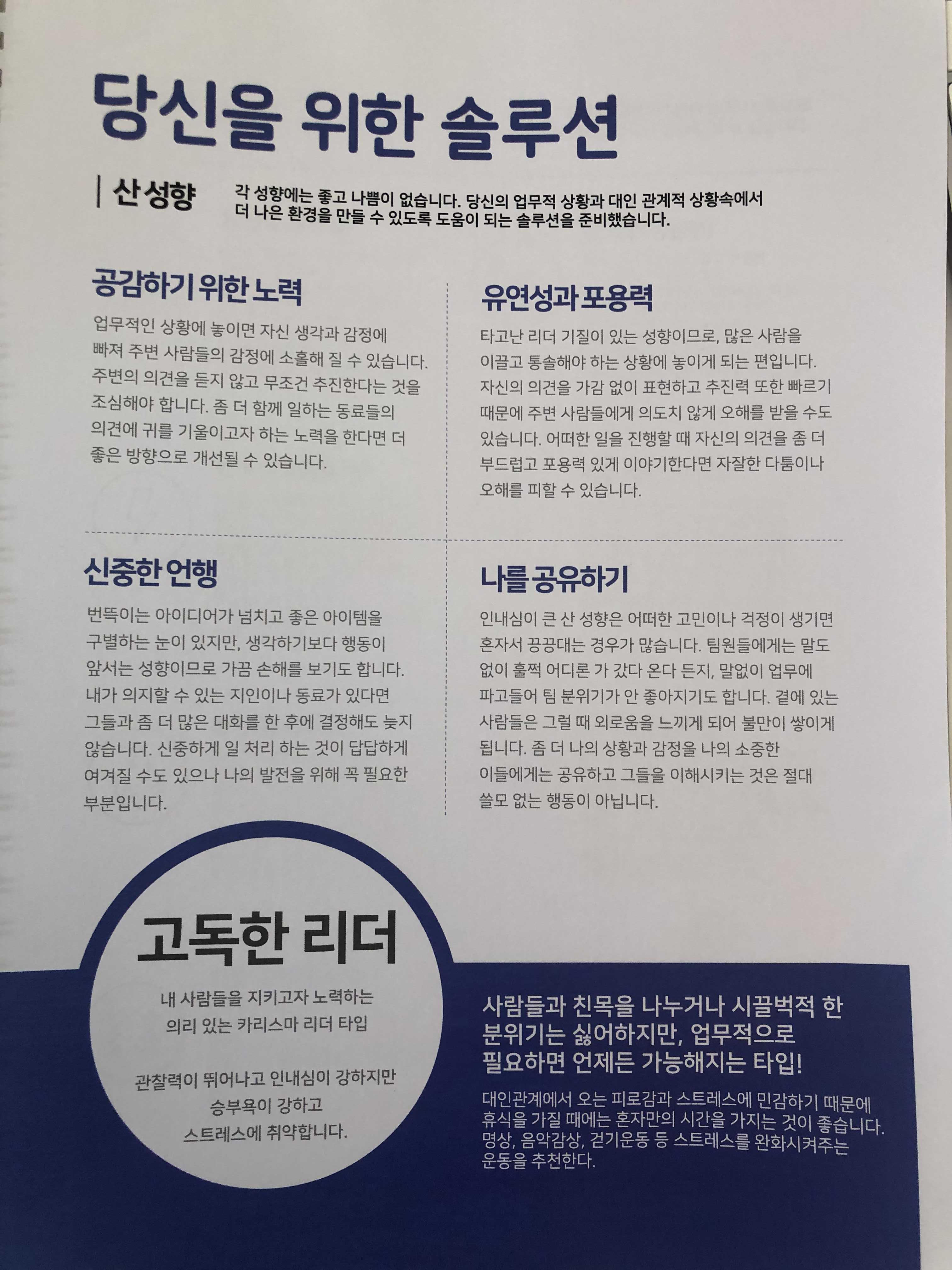 더웨이그룹이 개발한 성향진단 TPA에 따라 8가지 특성으로 나눠본 결과 여사장 80% 이상은 '산'의 성향이 압도적임을 확인할 수 있었습니다.
