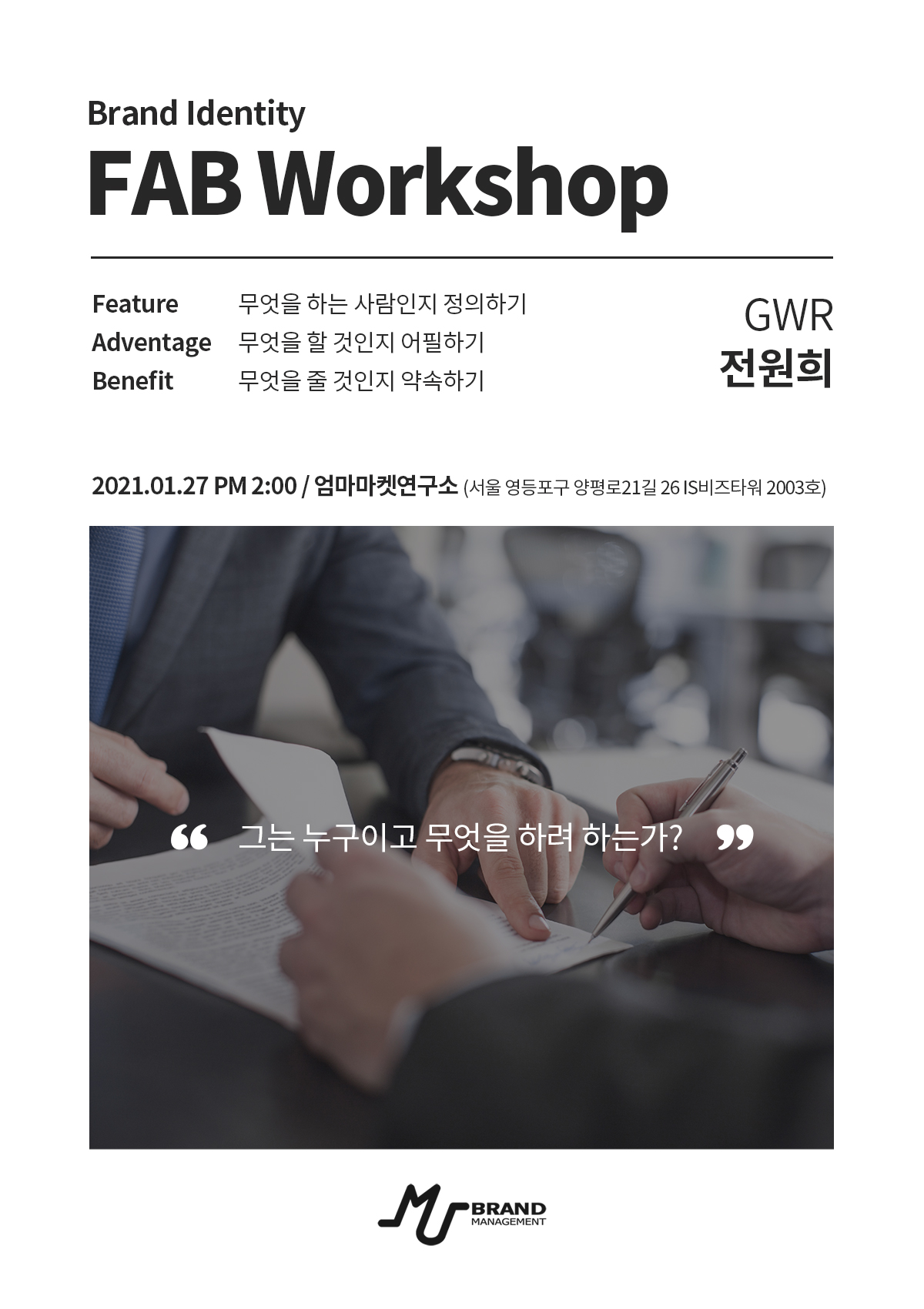 엠유 브랜드 아이덴터티 FAB워크숍 / 전병진, 전원희, 나겸주, 박수진 by 지식소통가 조연심