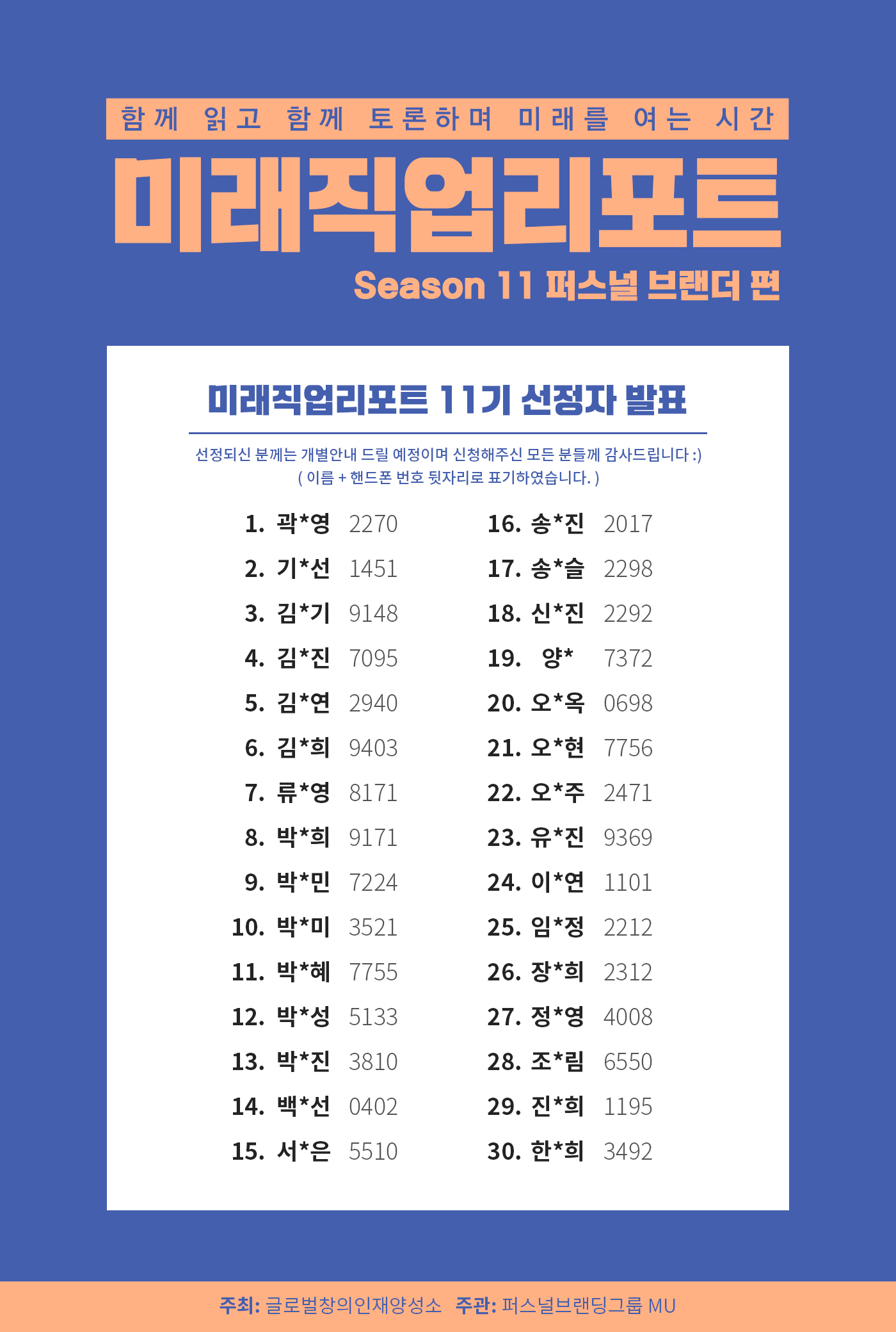 축하합니다! #미래직업리포트 시즌11 #퍼스널브랜더 편 최종 30명이 선정되었습니다.