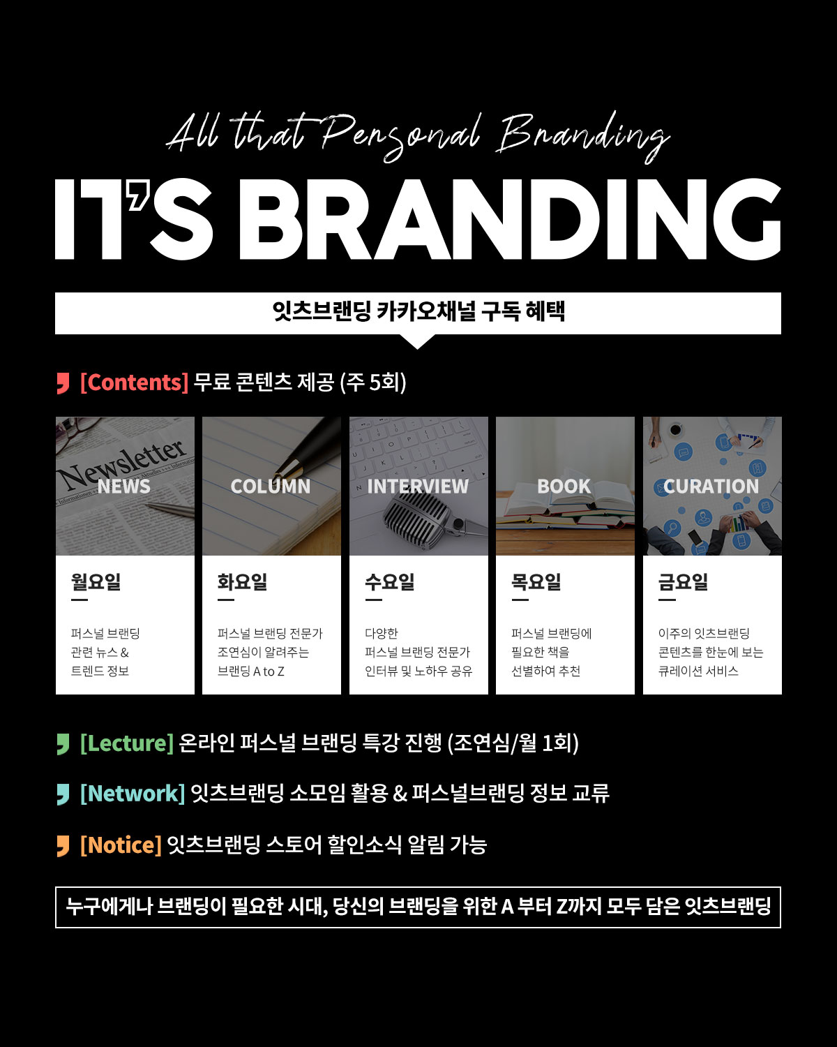 - 금: [Curation] 이주의 잇츠브랜딩 콘텐츠를 한눈에 볼 수 있는 큐레이션 서비스