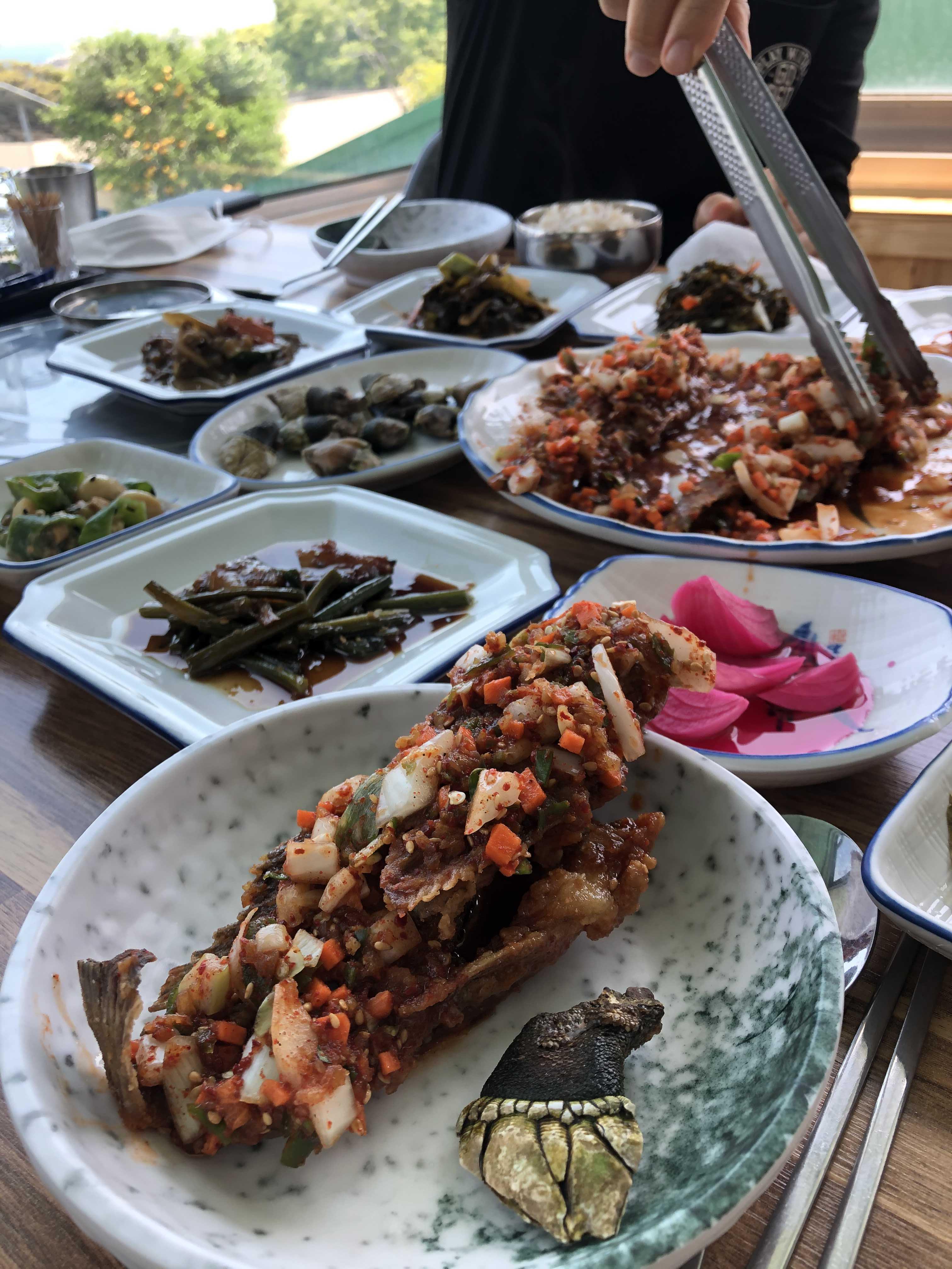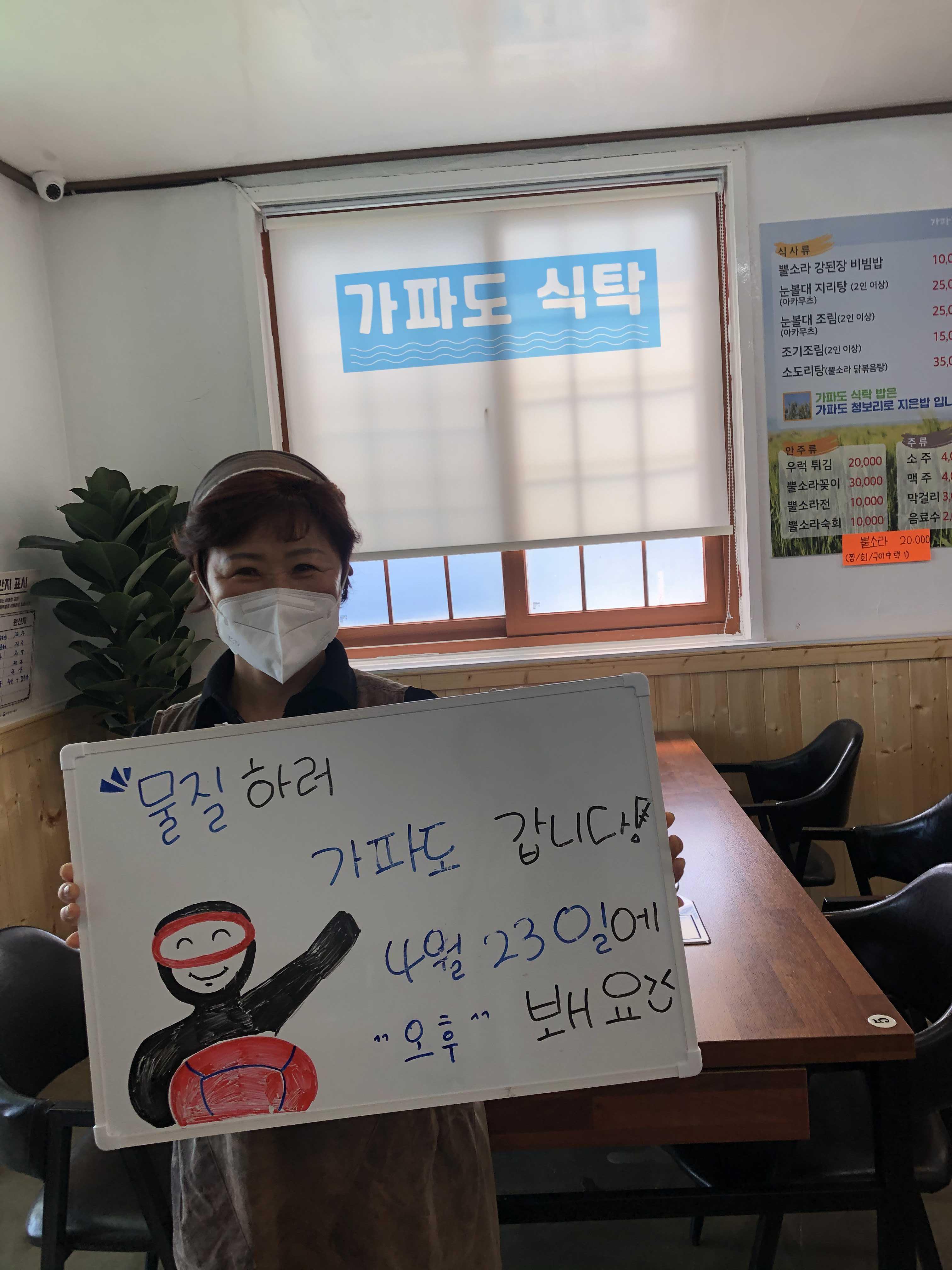 저 멀리 바다가 보이는 식당에 자리하고 가장 맛있는 거 추천해달라 하면 알아서 추천해주시는데 그게 젤루 맛나답니다. 참고로 사장님이 막걸리 무척 좋아하세요. 한 잔 정도 권하시면 가파도 관련 비밀도 들으실 수 있어요..
