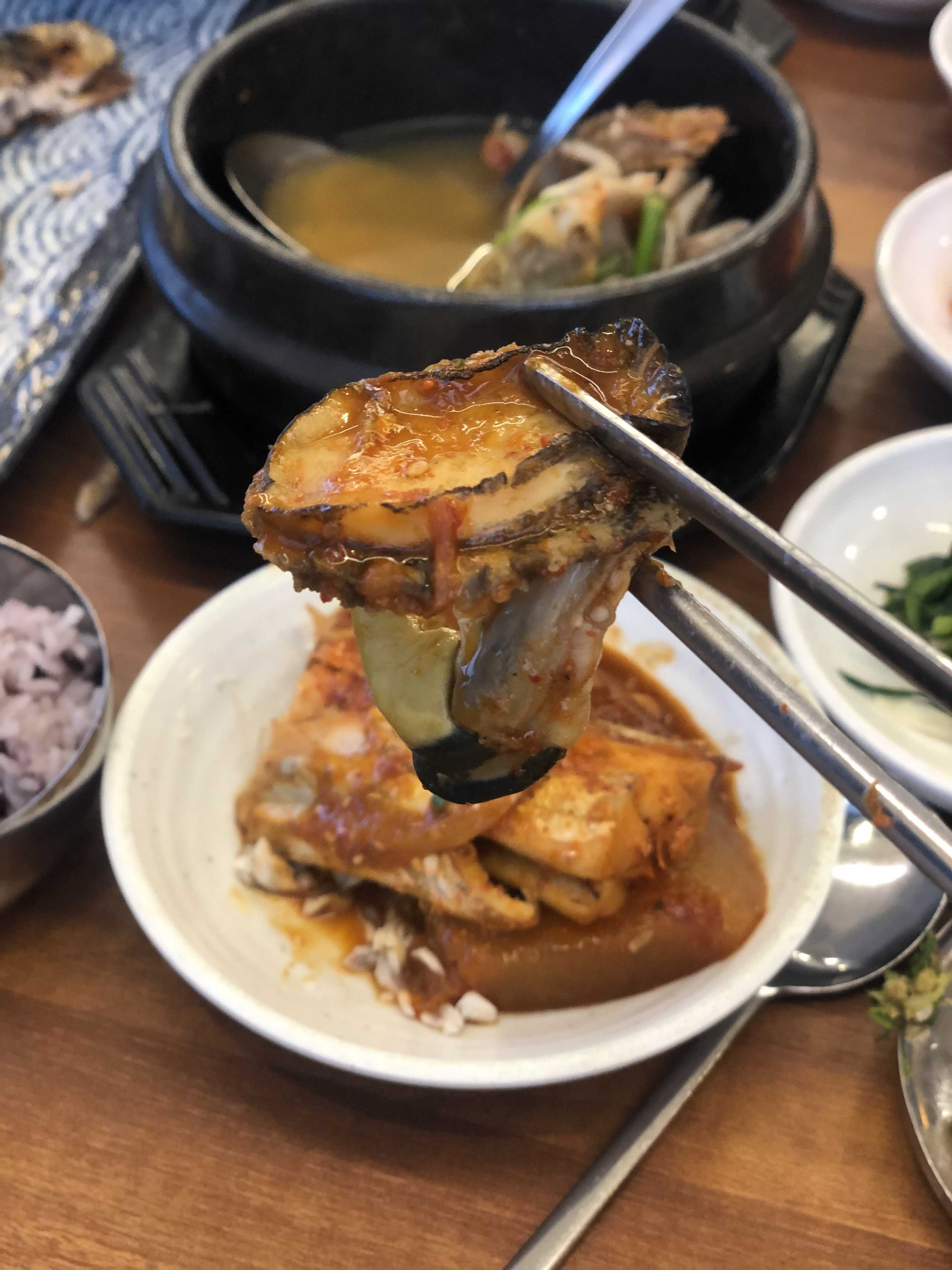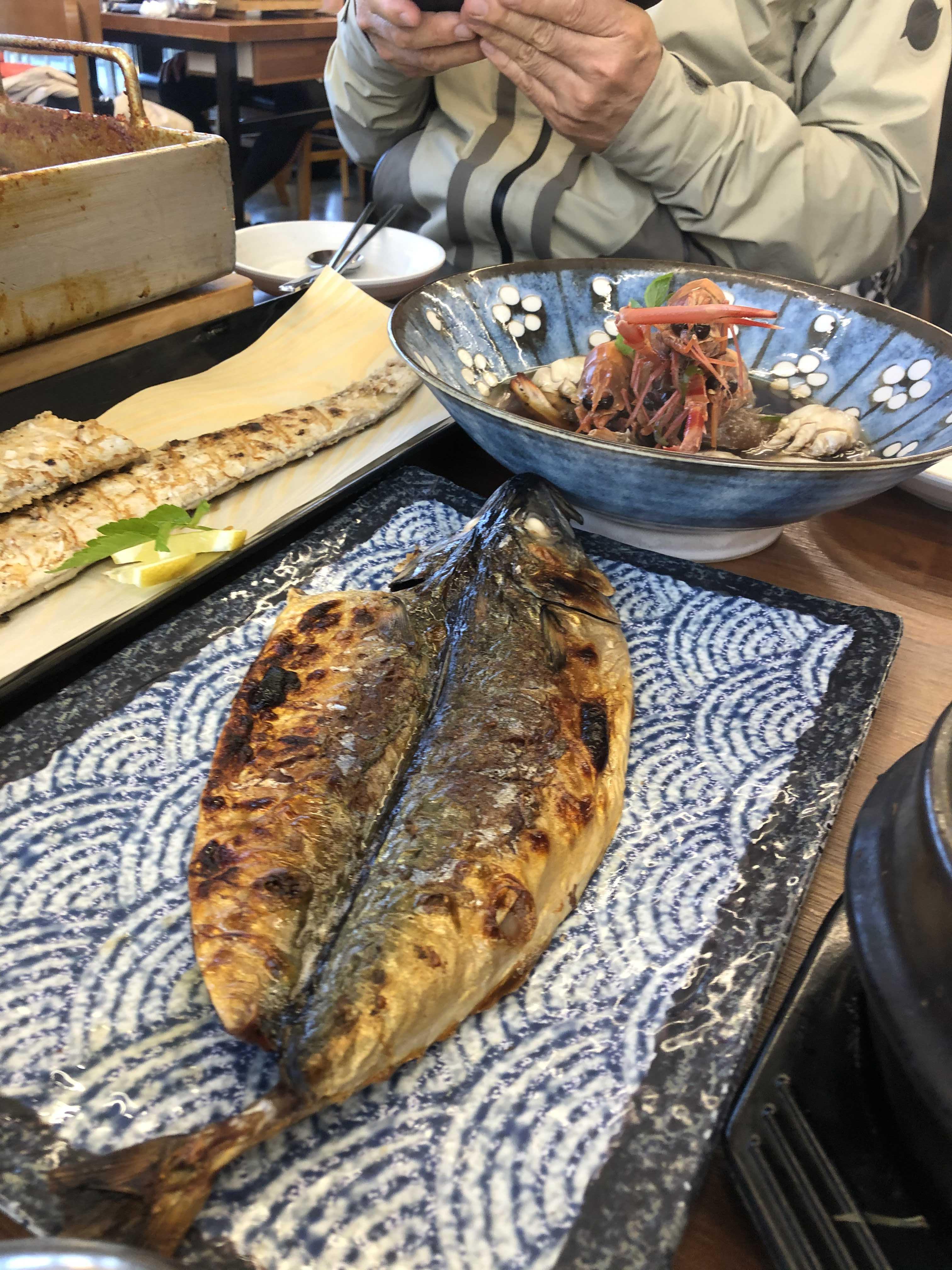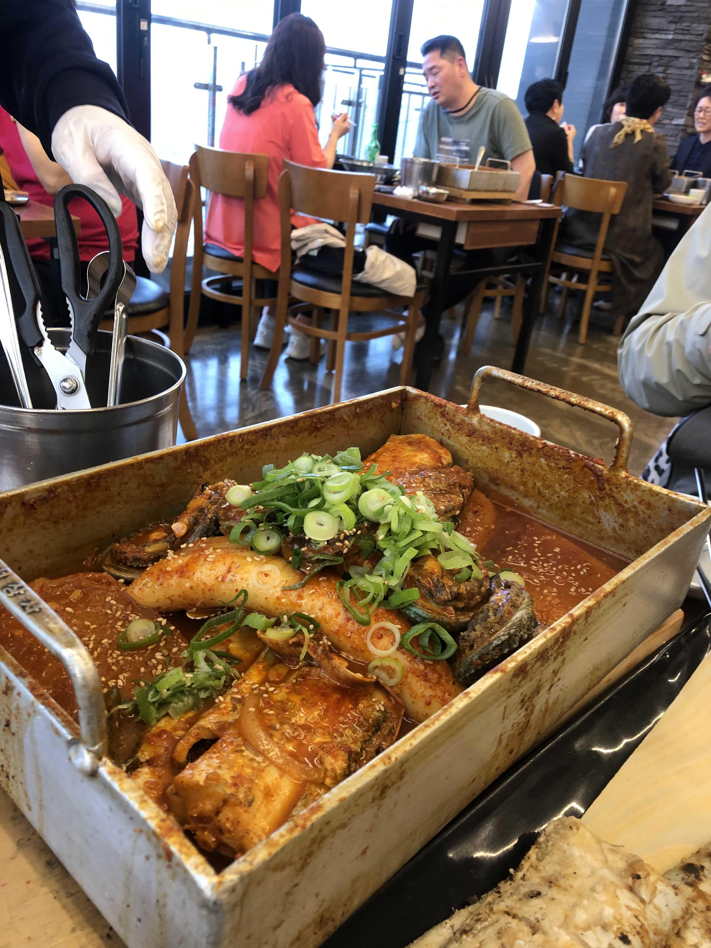 통갈치조림, 고등어구이, 갈치구이, 딱새우해물뚝배기,맛나는 밑반찬 등등