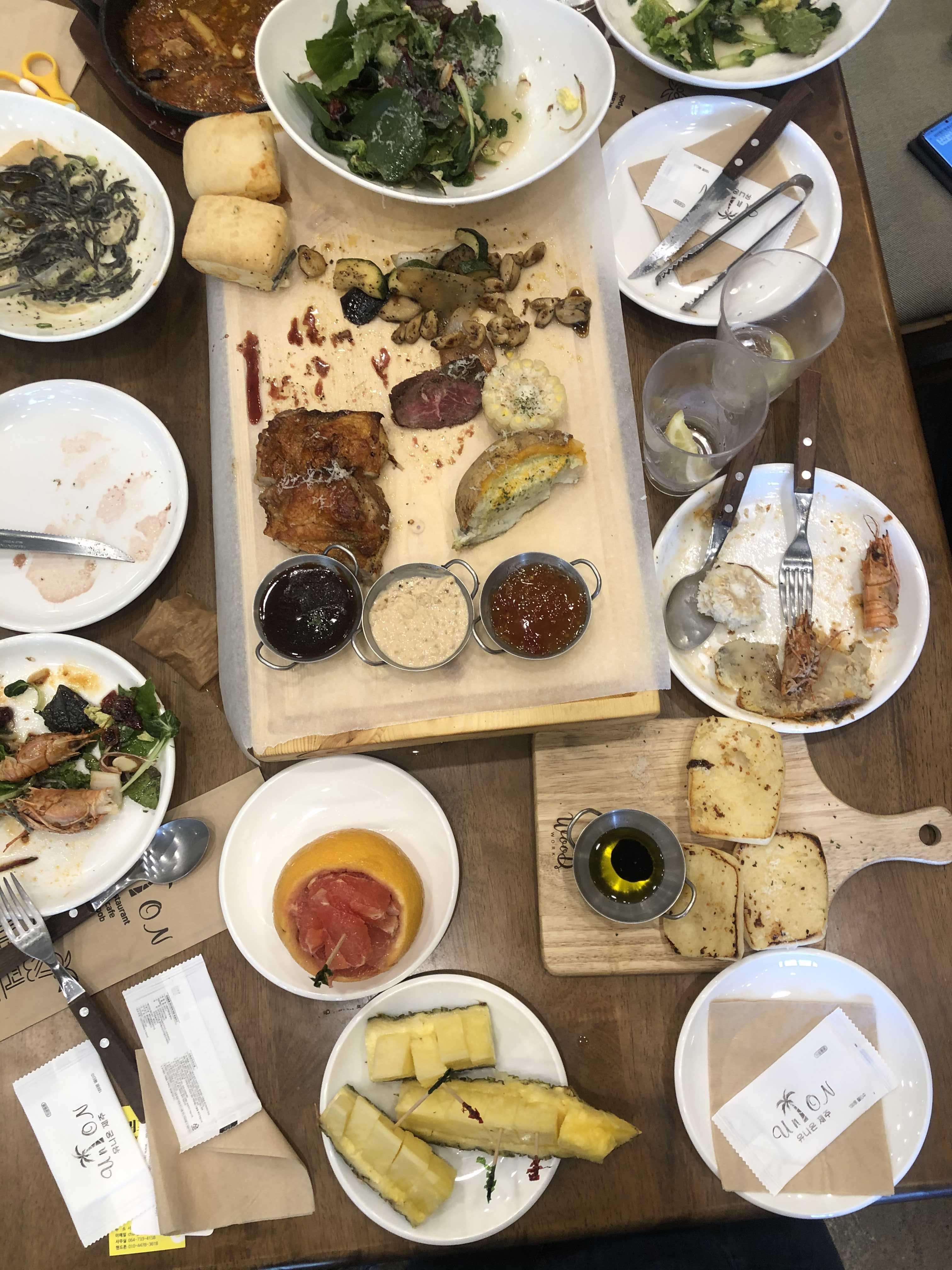 #엄성운 사장님이 준비해준 대로 맘껏 먹고 즐겼어요.. 마지막 메뉴인 소고기를 남길만큼 너무 거하고 훌륭한 식사였답니다.