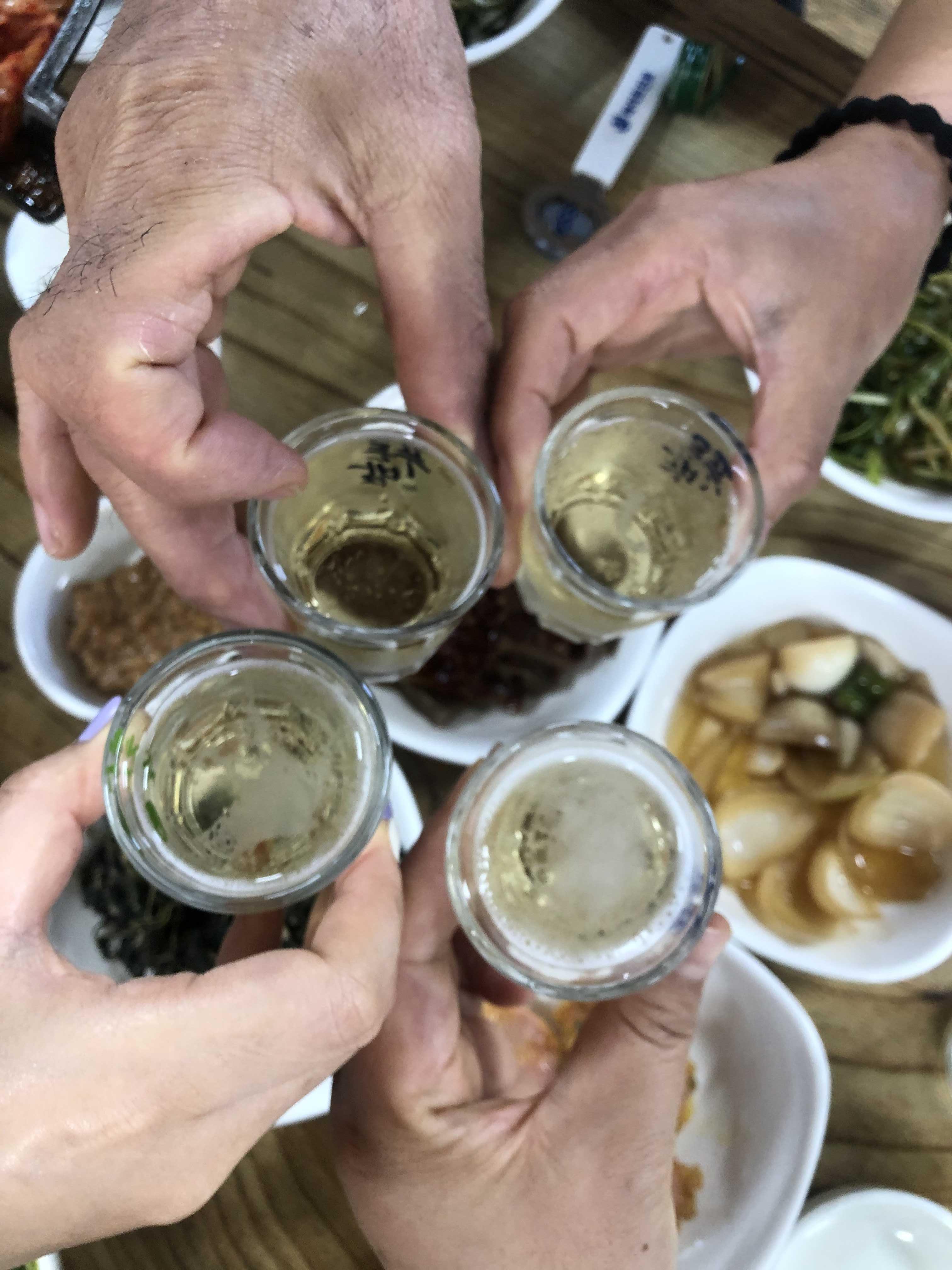 #소풍올레 에서 이장님이 사주시는 삼겹살에 소맥 먹으며 진하게 하루를 마무리했네요.