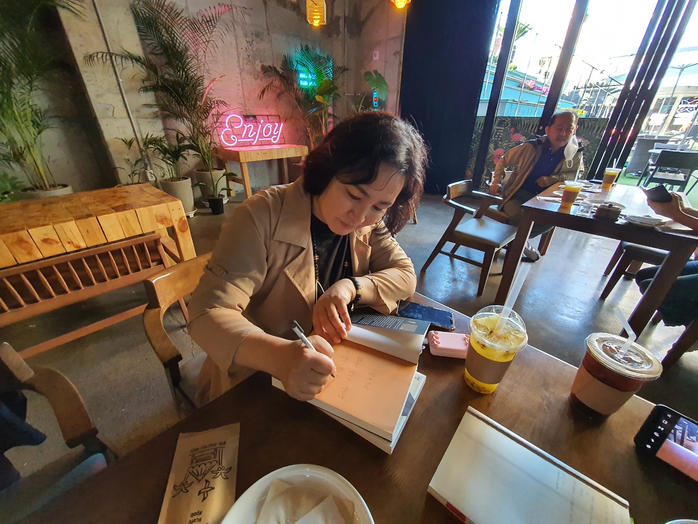 신유진, 박원민 두 분이 준비해주신 꽃다발과 미니 저자사인회 덕분에 더 행복했던 시간!