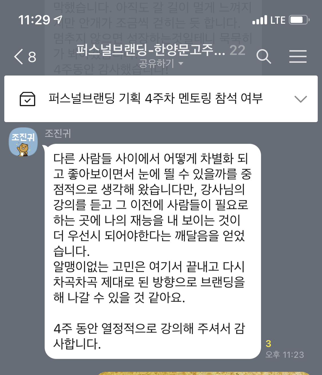 퍼스널브랜딩의 성공은 어느 날 빤짝하는 퍼포먼스가 아닌 긴 안목으로 점진적인 축적의 시간을 견딘 자에게 주어지는 포상이 아닌가 싶습니다.