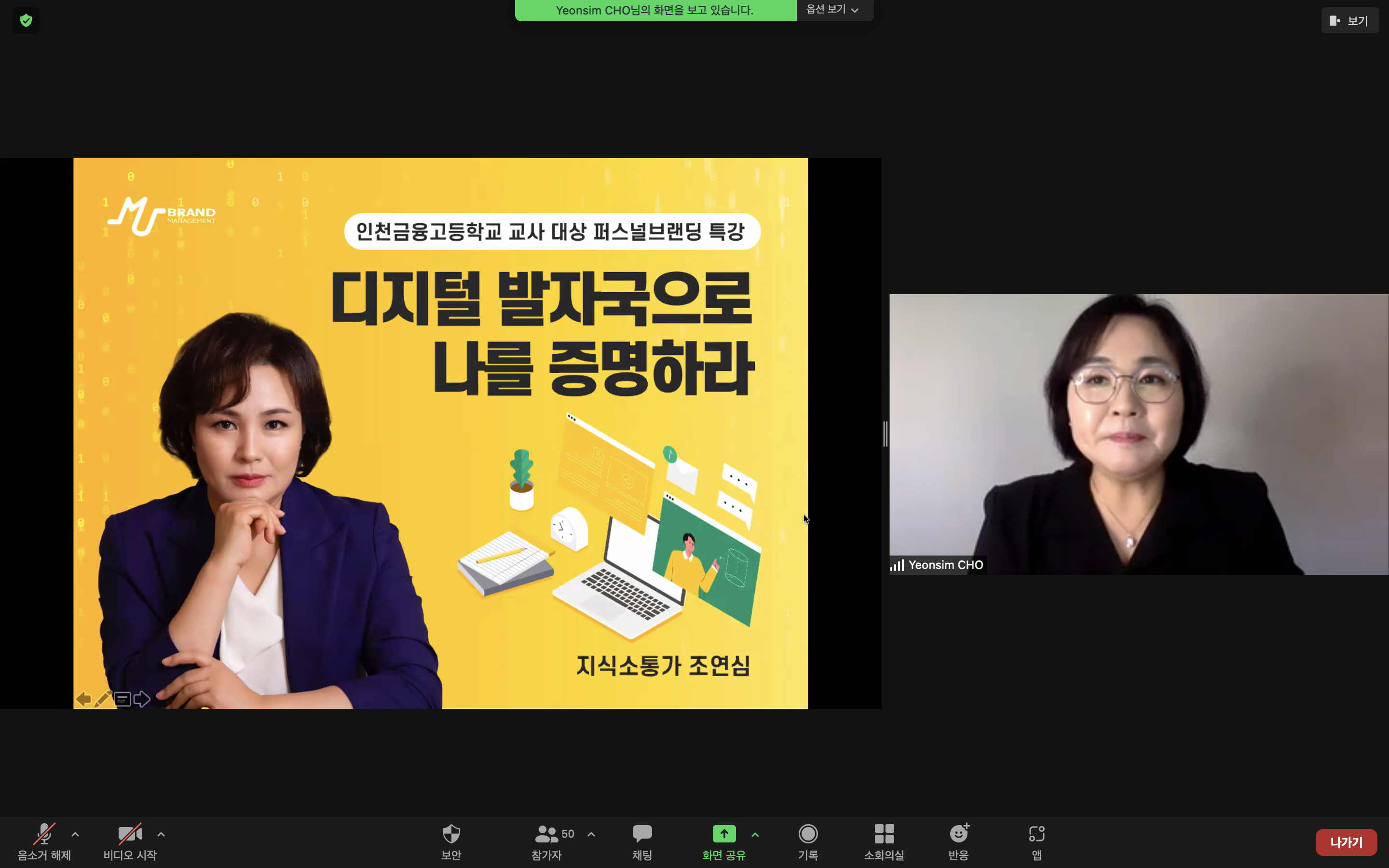 어제 오후엔 인천금융고등학교 전교사대상 #조연심 #퍼스널브랜딩 특강 #디지털발자국으로나를증명하라 제목으로 50여 명의 선생님들과 함께 했어요.
