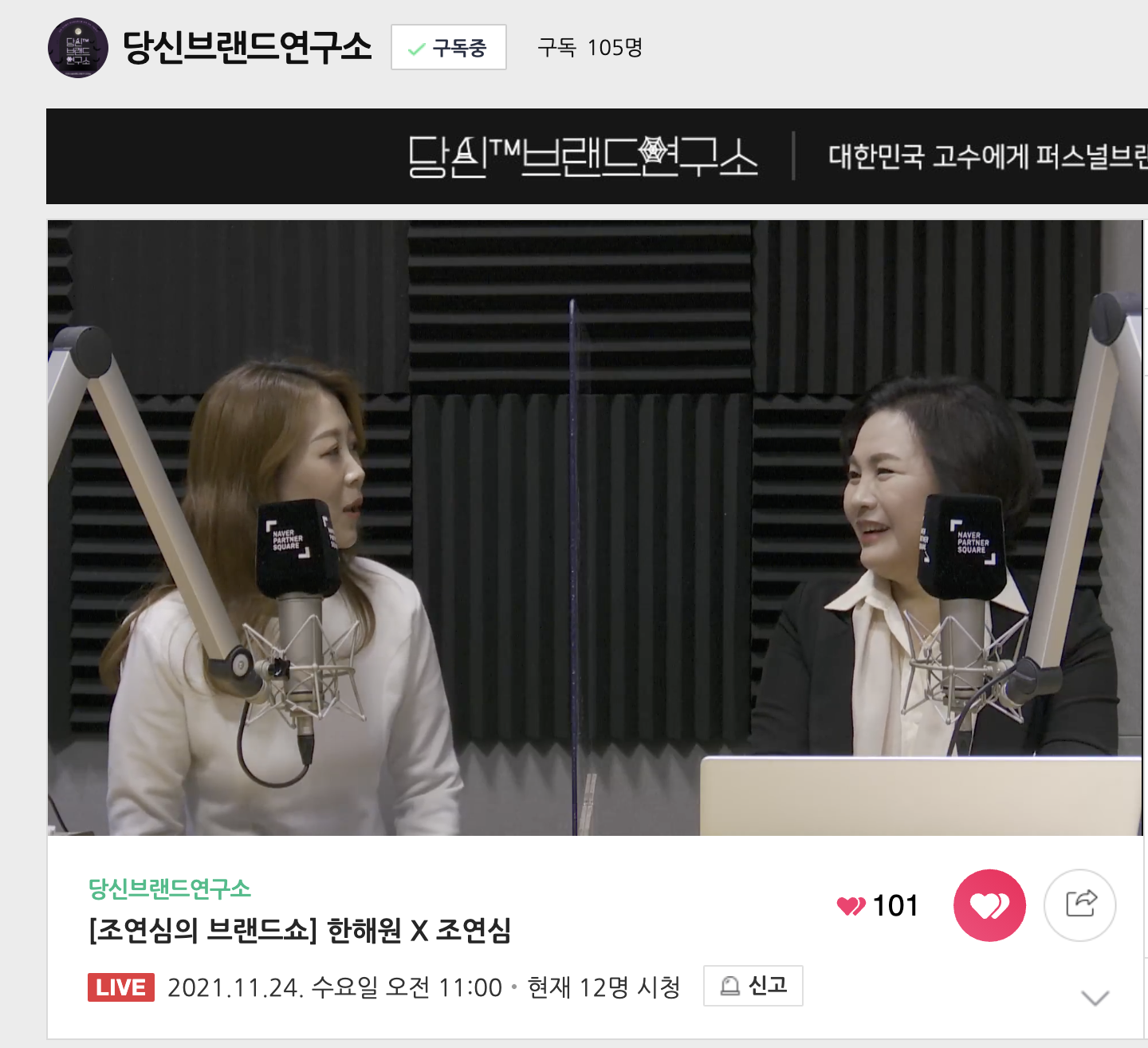 조연심의 당신브랜드연구소 의 라이브입니다.
