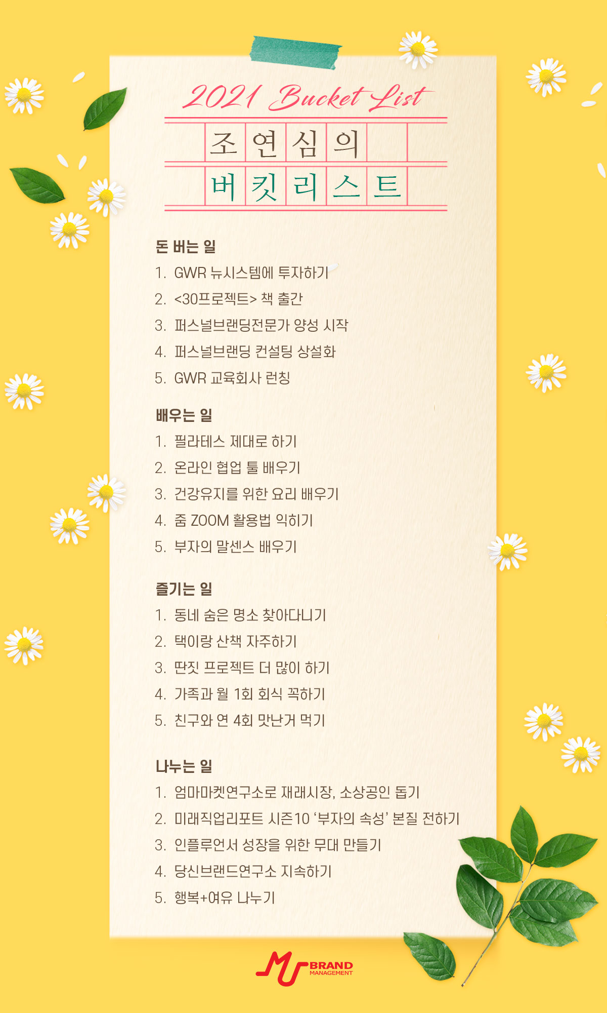 2021년을 시작하기 전 만들었던 조연심의 버킷리스트