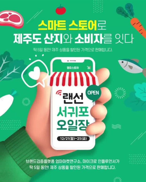 2020년 12월에 진행했던 랜선서귀포오일장! 올 해는 아직 오픈하지 못한 프로젝트다. 대신 소상공인 대상 영상 제작을 했다.
