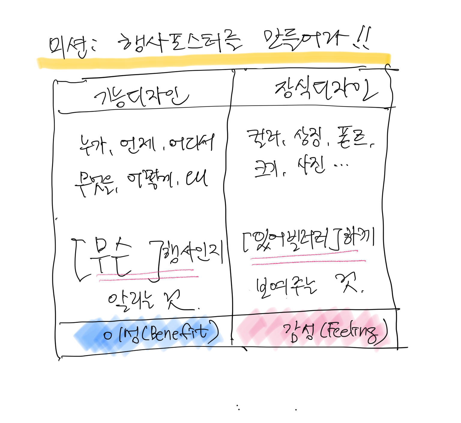 디자인= 기능 디자인 (전달하고자 하는 것을 쉽게 알아보게 해 주는 것) + 장식 디자인 (매력적으로 보이게 하는 것)