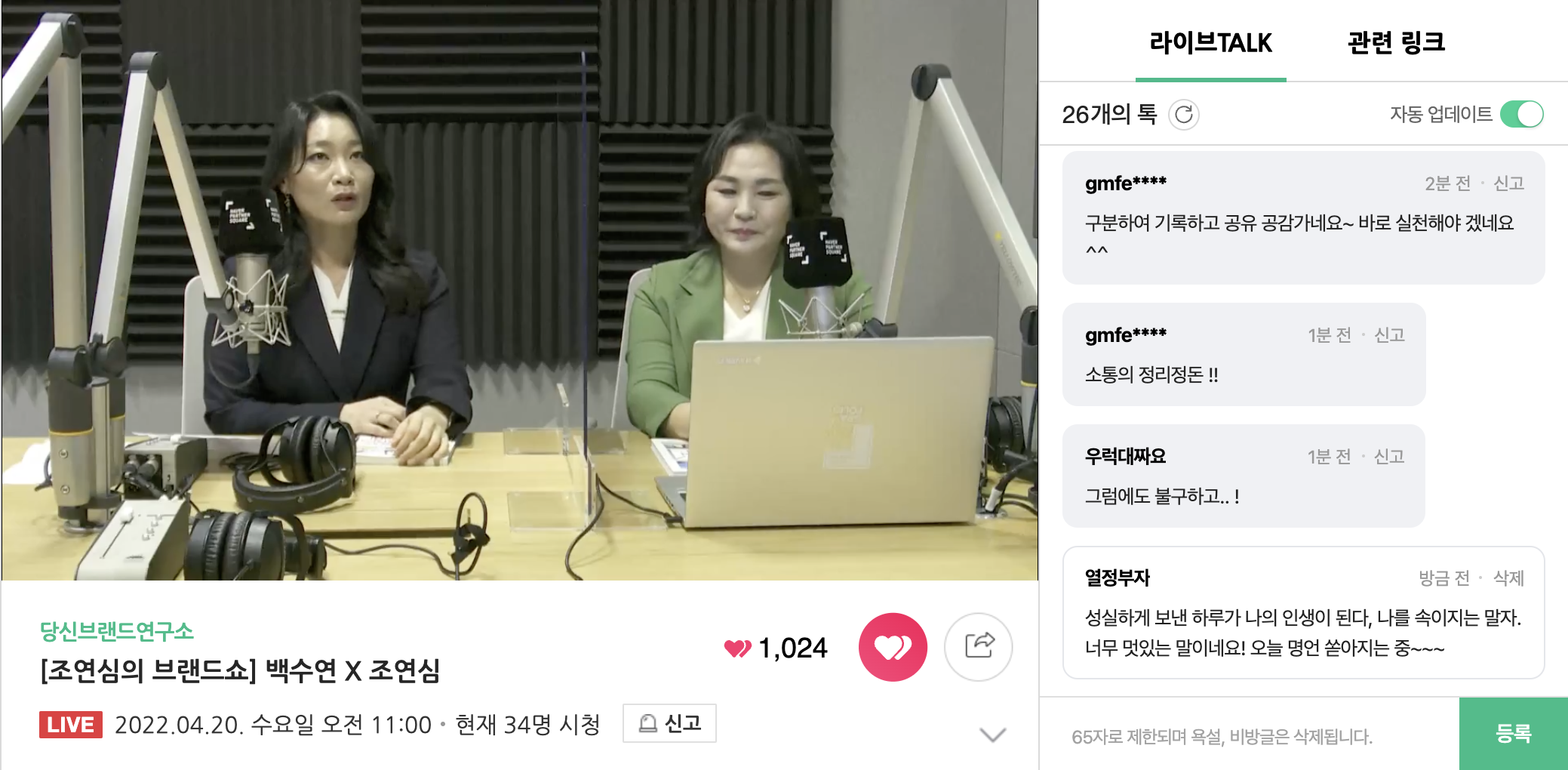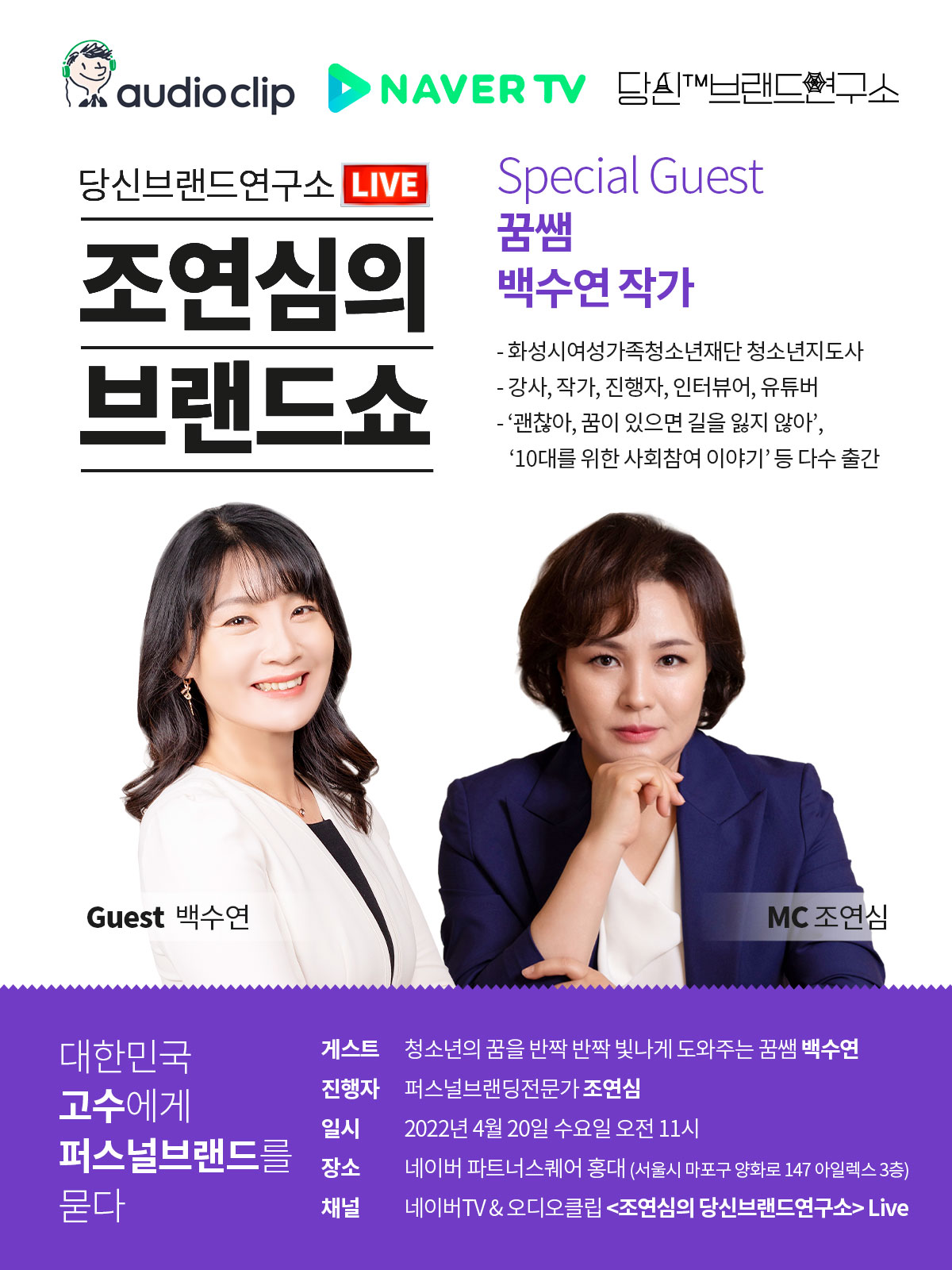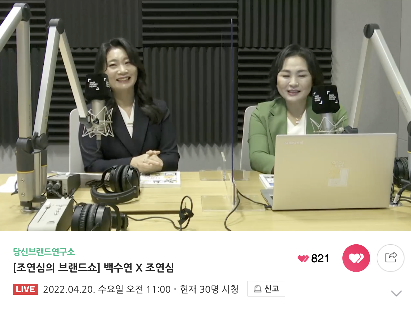 네이버 오디오클립& 네이버TV 당신브랜드연구소 #조연심의브랜드쇼 게스트 #백수연 작가 편