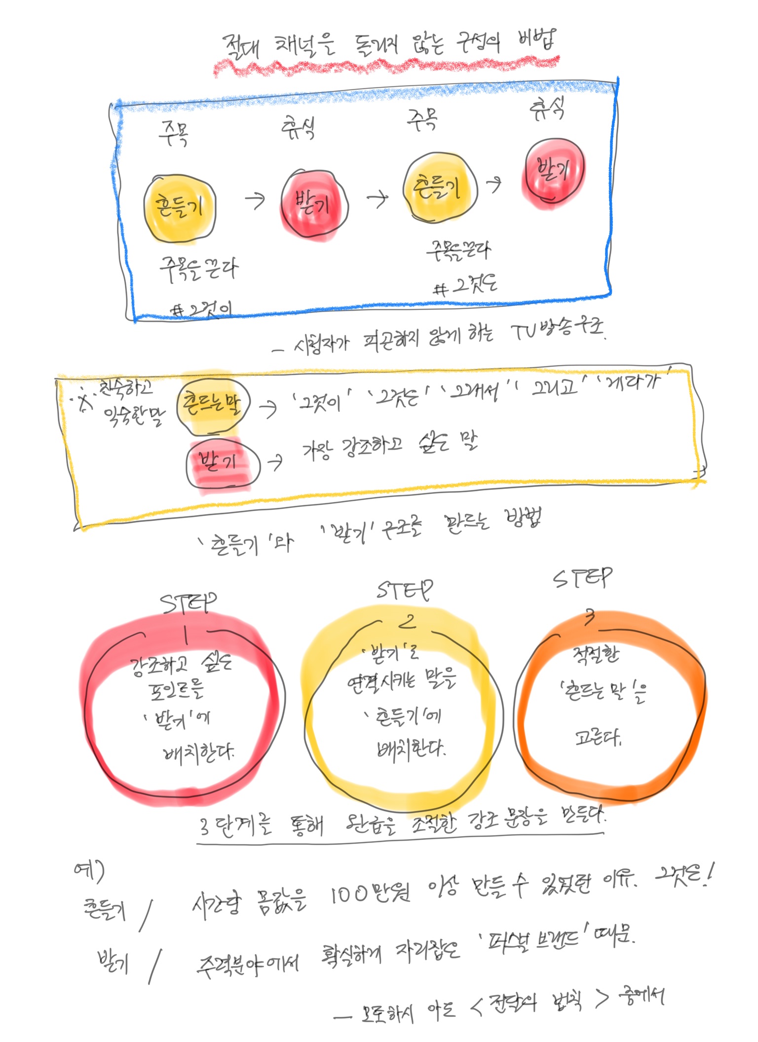 익숙하고 친숙한 언어로 흔들기를 하여 ‘주목’을 시킨 후