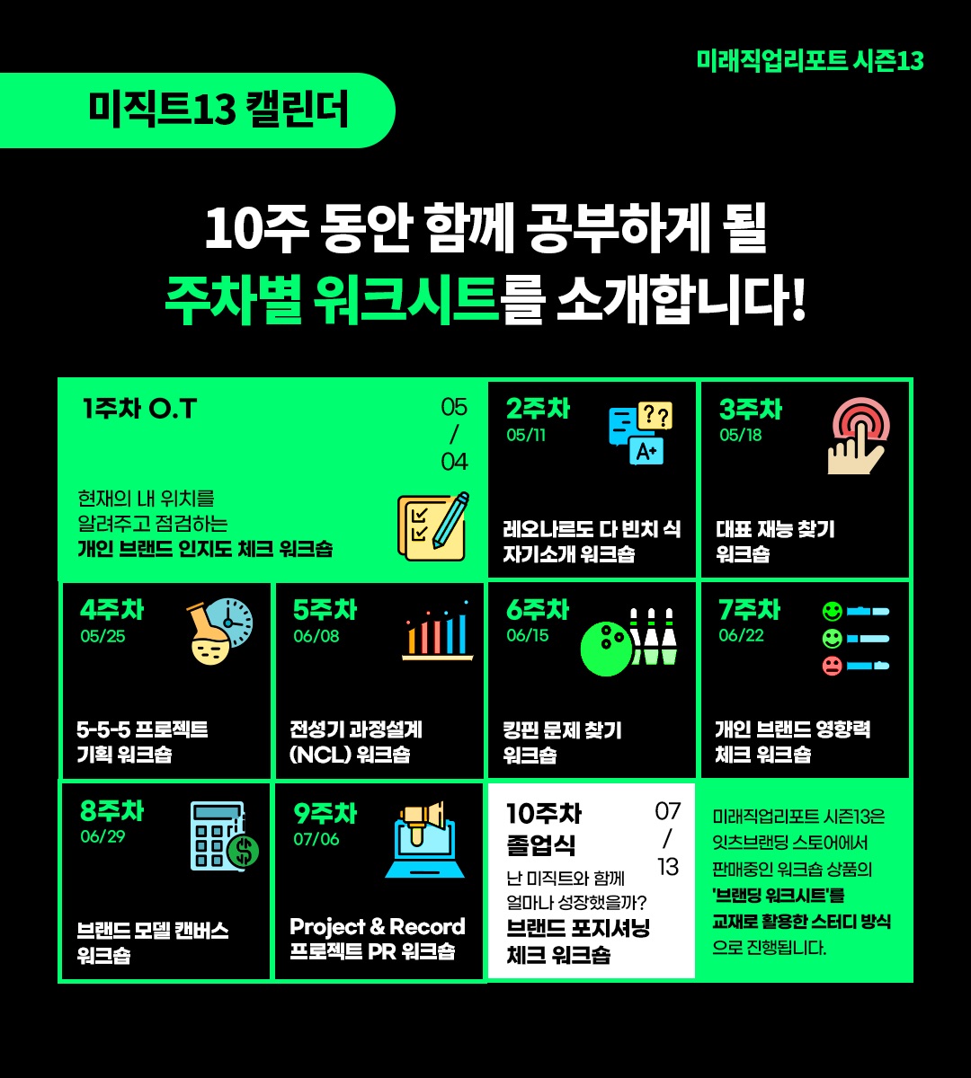 ☑️ 10주간의 일정 및 브랜딩 워크시트 목록