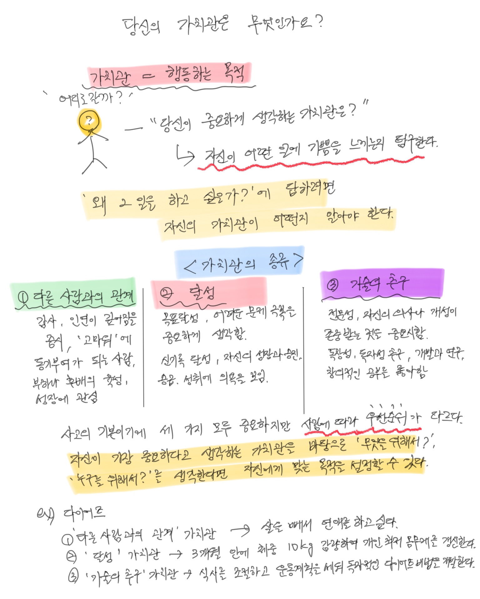 3가지 가치관 중 우선순위에 따라 당신이 하고자 하는 일의 목적을 명확하게 할 수 있다.