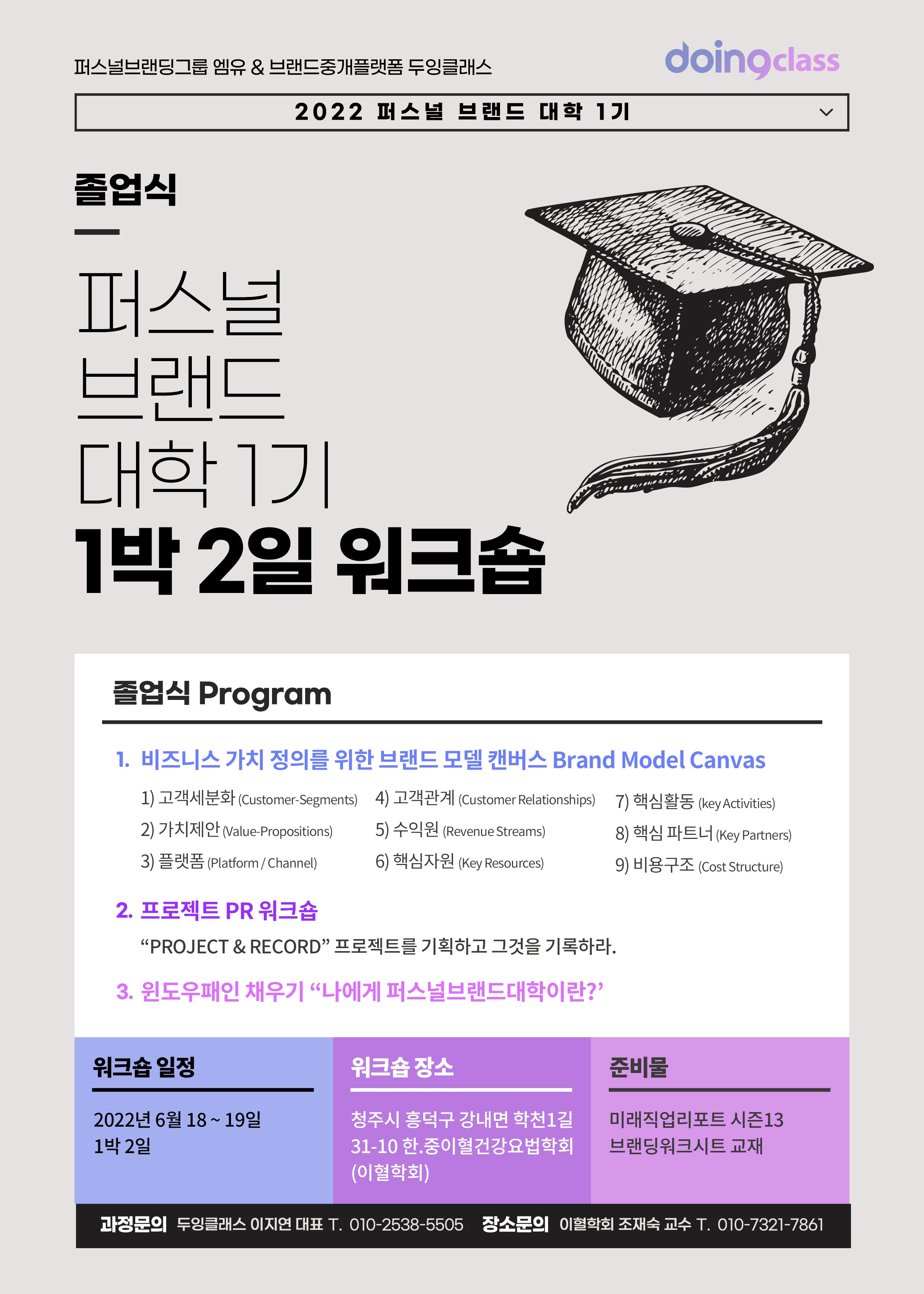 퍼스널브랜드대학 1기 졸업 수료식 안내