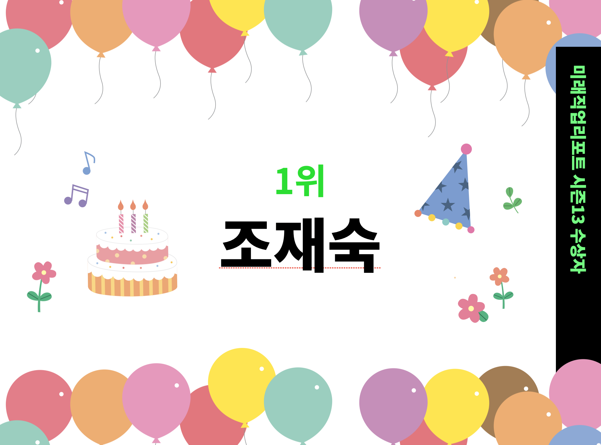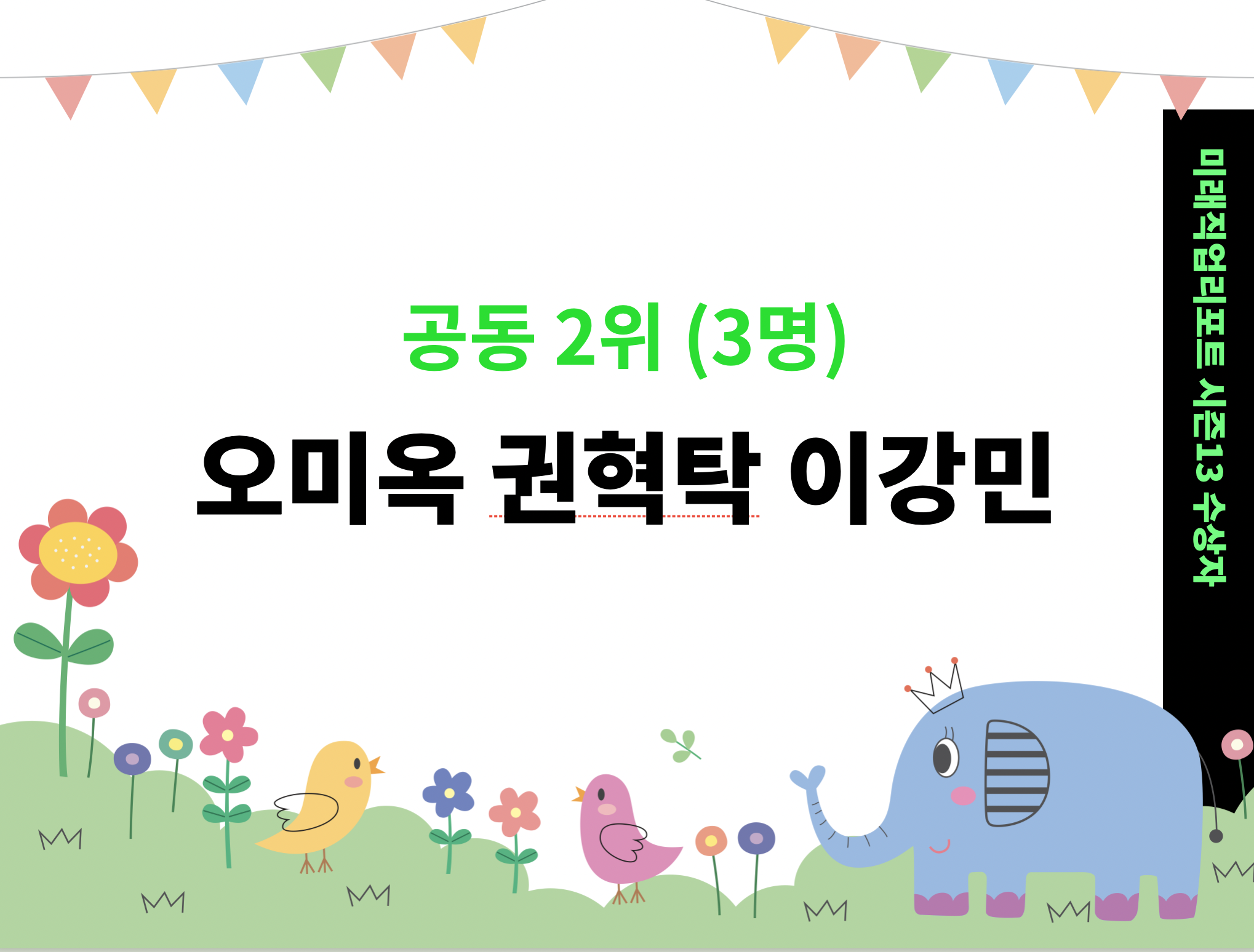 지난 10주간 출석, 과제, 성장률 등을 점검해 최종 1위, 2위를 선정했고, 발표합니다.